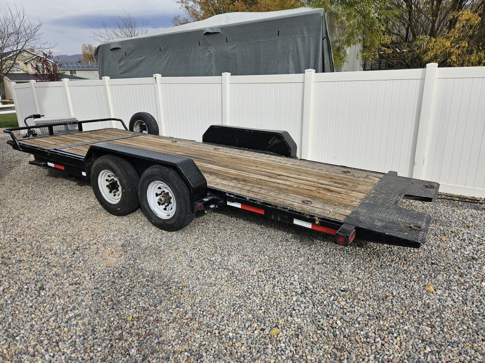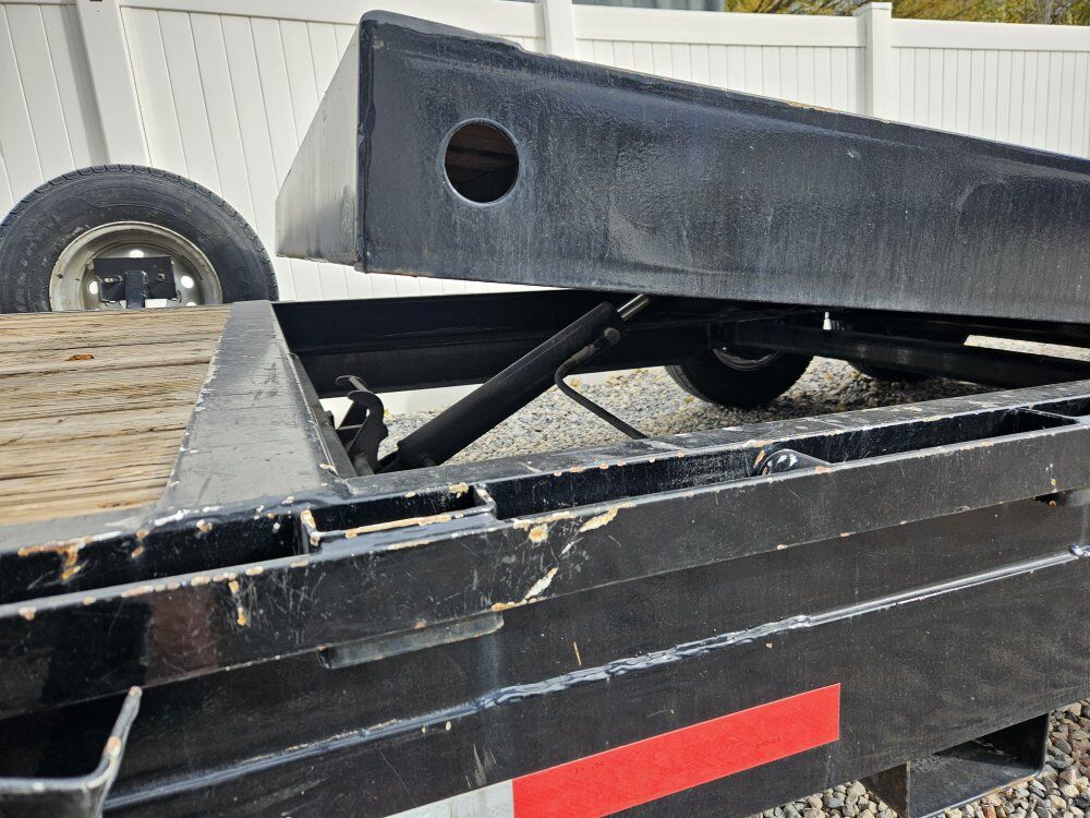 VenmoPJ tilt deck equipment trailer. 14 GVWR the deck is 20 foot. 4 foot flat 16 foot tilt. Tires are all good plus a spare.