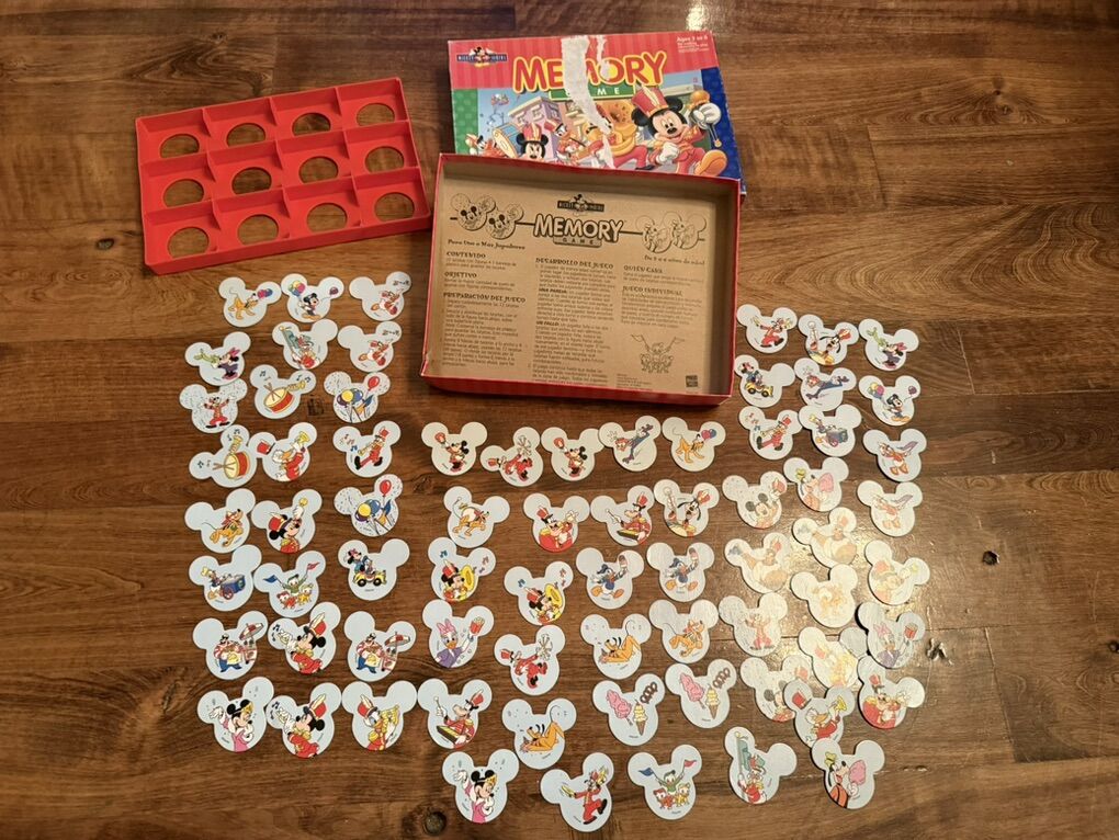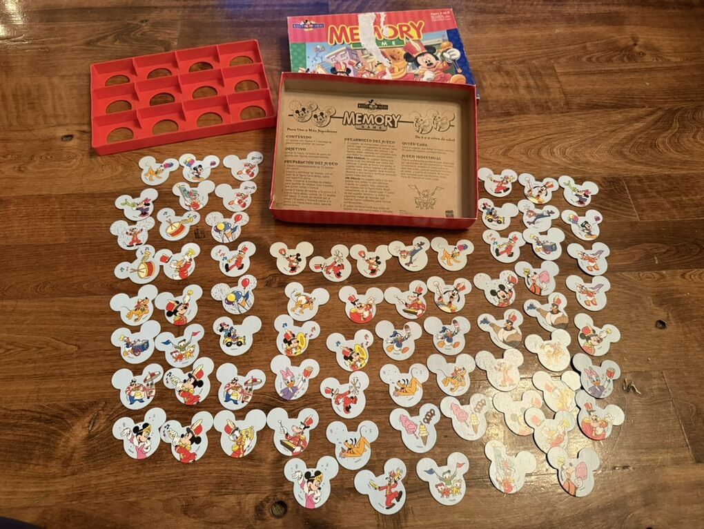 Disney Mickey for Kids memory game has ALL pieces box has some damage on top.