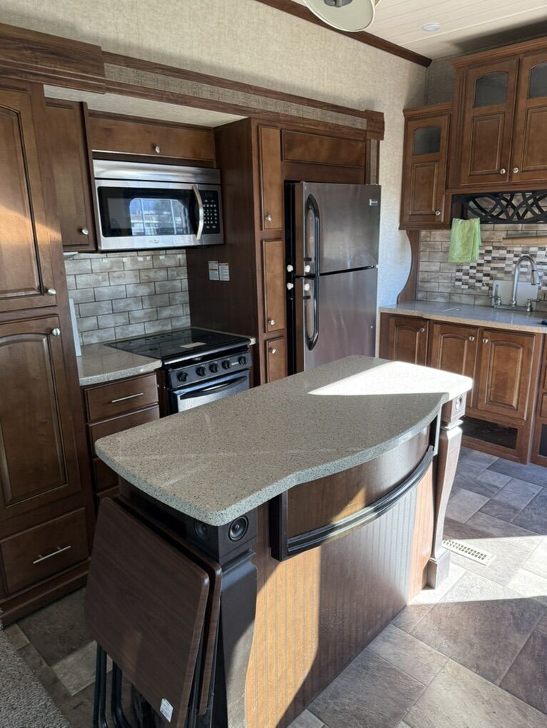 Experience the difference of premium RV living in this 2016 Heartland Oakmont 345RS. With triple-slides, a rear living/kitchen area built around a full-size residential fridge and island, upscale finishes throughout, and room to sleep up to 4 comfortably in luxury — this model checks every box. The robust exterior, including fiberglass sidewalls, aluminum wheels, electric stabilizers and hydraulic jacks, makes setup easy and solid. Whether you’re heading out for a weekend escape or a full-season adventure, this Oakmont brings resort-style comforts with the capability to match. Don’t miss out on ownership of one of the most refined fifth-wheels of its class. This trailer is in overall excellent condition, however it is 9 years old so it is not perfect. All mechanical features work perfectly to my knowledge, however there are some small cosmetic imperfections. Please view all the pictures for details or better yet come out a take a look. https://www.jdpower.com/rvs/2016/heartland-rvs/m-345rs/6555514/specs