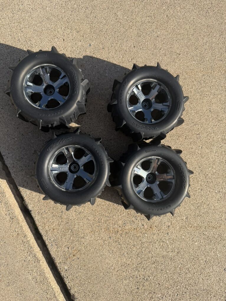 ApplePayTraxxas Paddle Tires. Practically new. Came off a Rustler 4x4. Will fit Stampede 4x4, Hoss, etc. asking $60 for all 4. Not interested in trades.