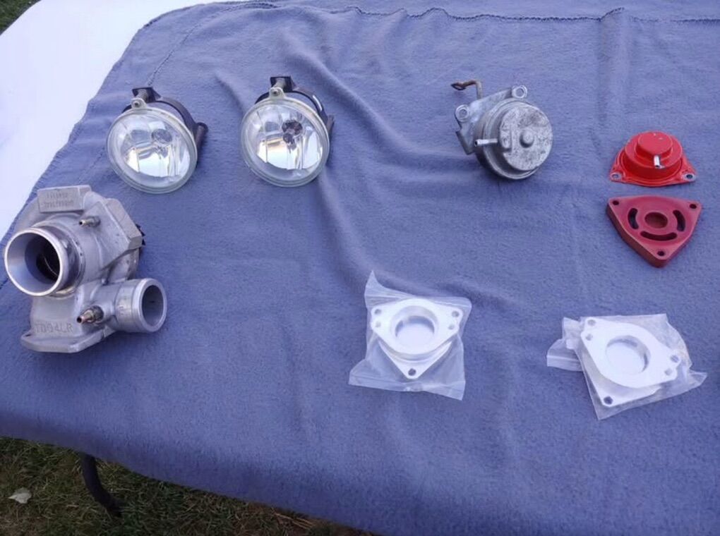 PayPalI have a few parts available for sale A set of fog lights in great condition, White powder coated stock turbo with brand new cartridge , Brand new oil feed line Stock set of fuel injectors in good condition Stock blow off valves and sound plates Brand new Blow off valve adapter plates Stock wastegate An idle air control valve sensor A pair of brand new Rear adjustable coilovers A coolant hose with glass center Brand new white lower coolant hose Brand new Camshaft position sensor Idle air control Valve sensor Map and tip sensor Oem transmission fluid fill cap Brand new knock sensor A nearly new set of solid motor mounts