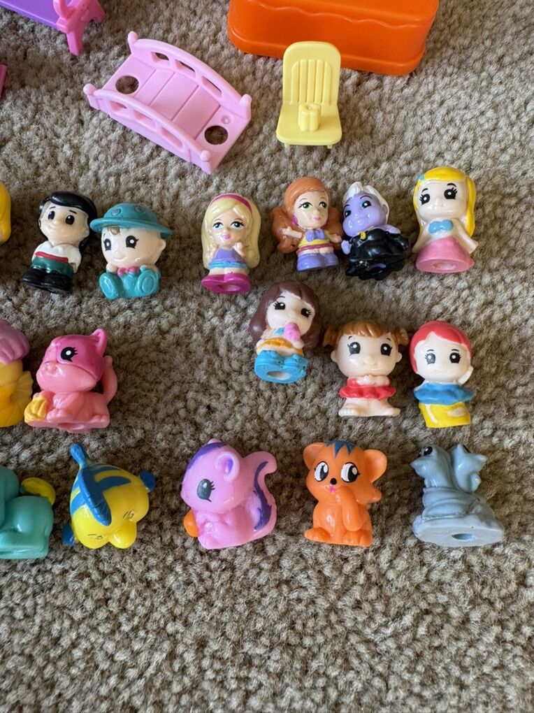Squinkies Toys and Accessories. About half Disney figures, half animals. Includes everything shown in photos, 42 figures from various sets, plus plastic balls and other accessories. Sold as a set only. Very good condition. Text only. Cash or Venmo.