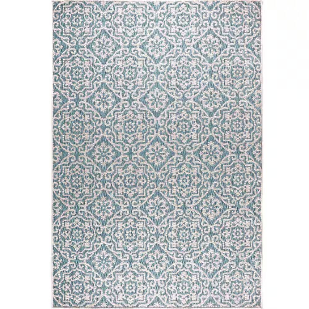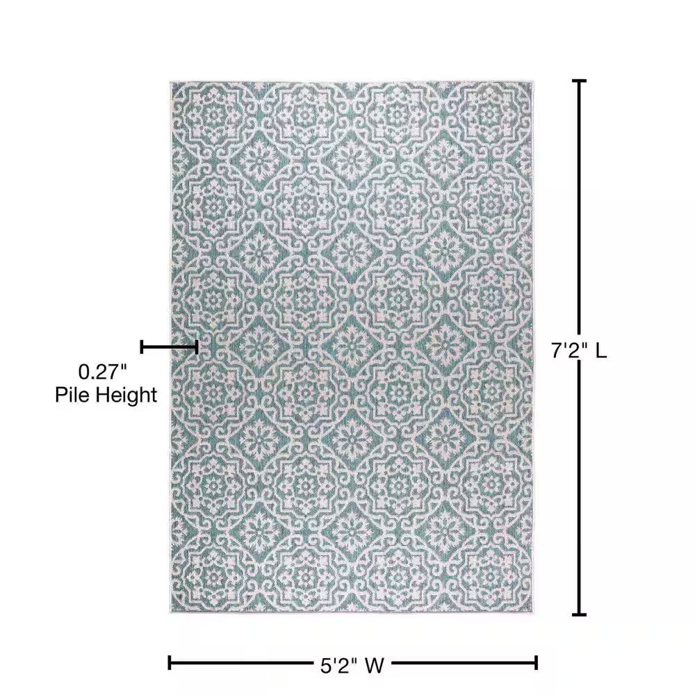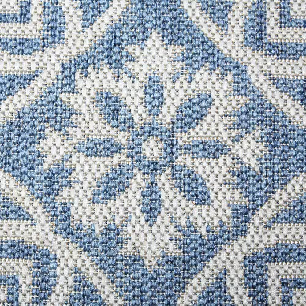 Add comfort and style to your indoor/outdoor space with the Nicole Miller New York Patio Country Danica rug collection by Home Dynamix. Showcasing an allover medallion motif with florals and Victorian spades, this pretty rug will add an eye-catching accent your patio, deck or screened-in porch. The easy-care rug is durable and won ft. t scratch your deck surface. It ft. s UV fade and weather resistant. Ideal for indoor, high traffic areas such as the kitchen, playroom, and mudroom.. Backing Material: Polypropylene. Cleaning Instructions: Spot clean. Color Family: Blue. Color/Finish: Blue/Gray. Construction: Machine-Made. Features: Stain Resistant,Washable. Flooring Product Type: Outdoor Rug. Indoor/Outdoor: Indoor,Outdoor. Location Type: Bedroom,Deck,Dining Room,Living Room,Office,Patio. Pattern: Trellis. Pile Height: Medium Pile. Recycled Materials (%): 0. Returnable: 90-Day. Rug Material: Synthetic. Rug Weight (lbs.): 9.3 lb. Shade Type: Dark. Shape: Rectangle. Style: Modern. Theme: Unthemed. Weave Type: Loomed. Coverage Area (sq. ft): 37.028. Pile Height (in.): 0.27 in. Product Length (in.): 86 in. Product Thickness (in.): 0.27 in. Product Width (in.): 62 in. Shape, Exact W x L: Rectangle, 5'2" x 7'2". Pile Height: Medium Pile. Shape: Rectangle. Features: Stain Resistant. Features: Washable. Rug Material: Synthetic. Pattern: Trellis. Indoor/Outdoor: Indoor. Shade Type: Dark