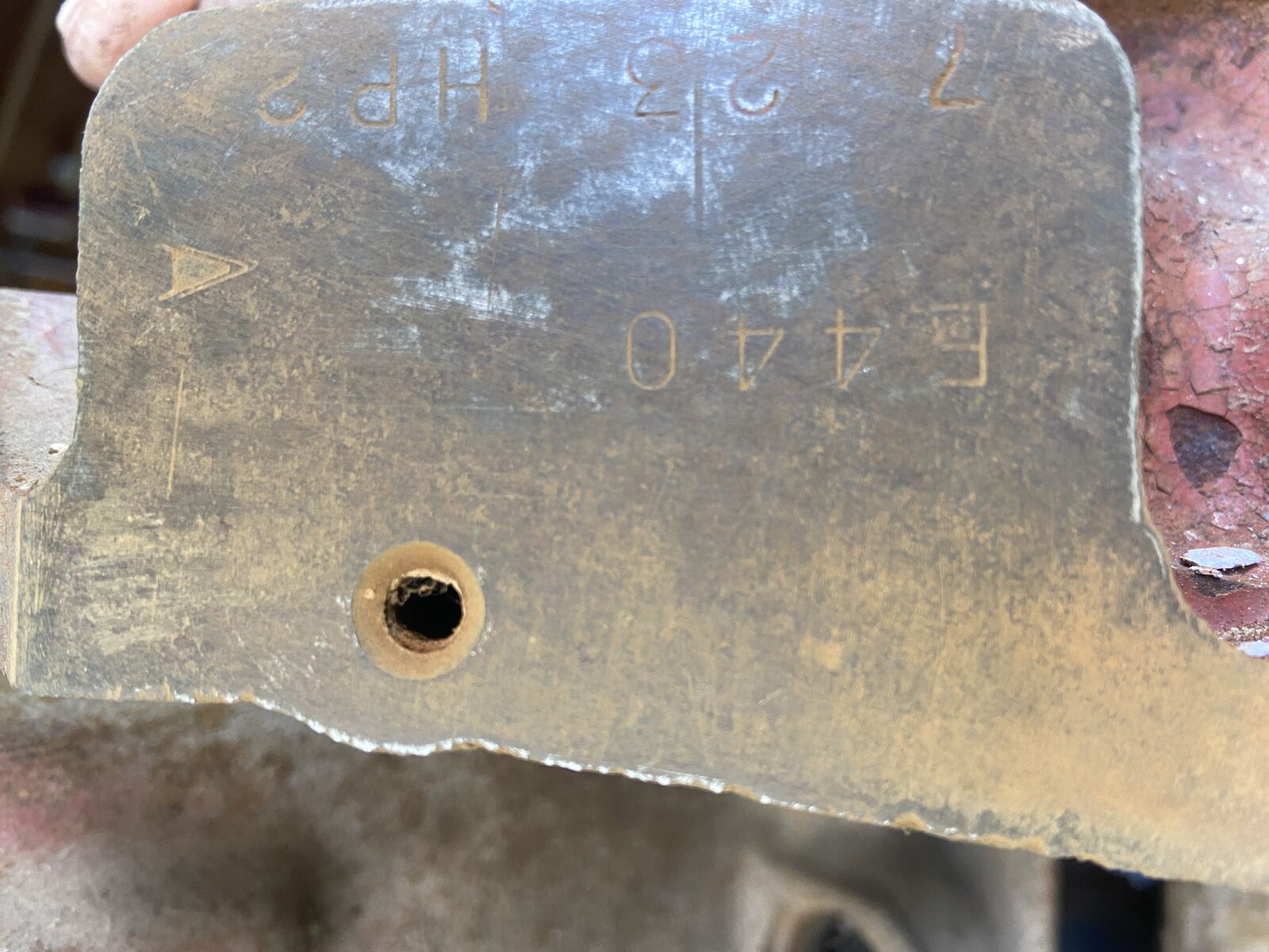 This is an early production E 440 date coded HP engine that has a standard forged crank, LY connecting rods, water pump housing, 906 heads, windage tray, oil pan valve covers and HP exhaust manifolds. Block has been bored .030 over at one time and will need machining for rebuild. Came out of a 69 Plymouth GTX identifiable by the RS23 VIN number stamped on the side of the block. This is a great find for the price. Make a great date code correct block for your Mopar build.