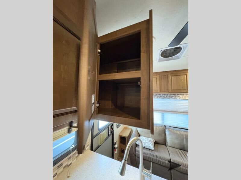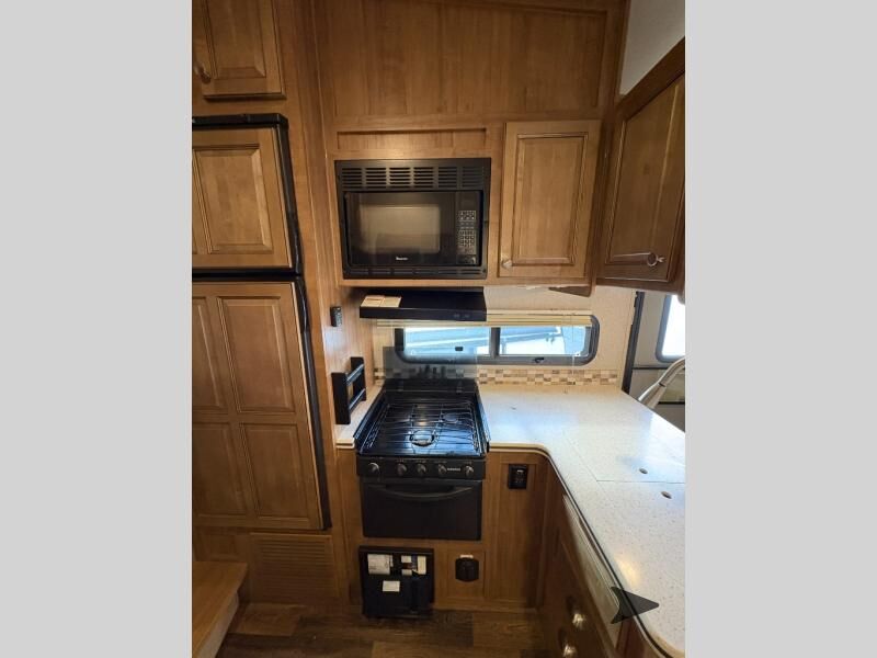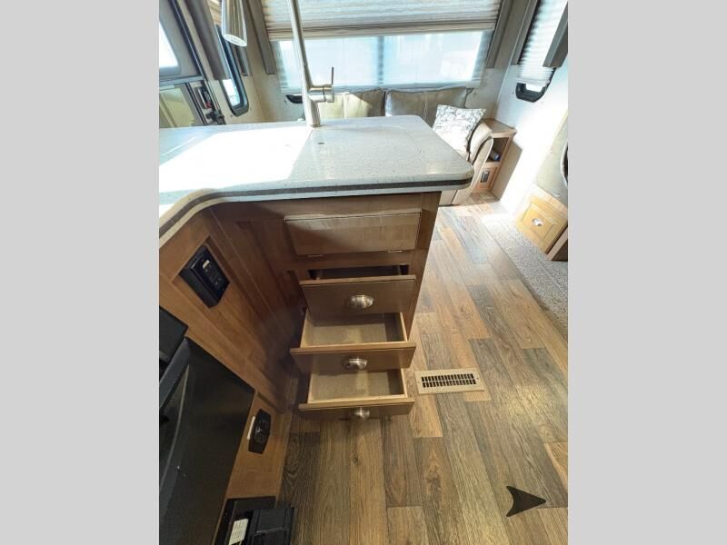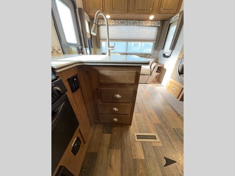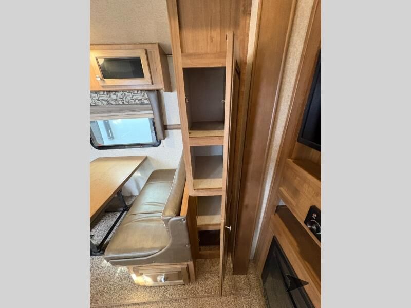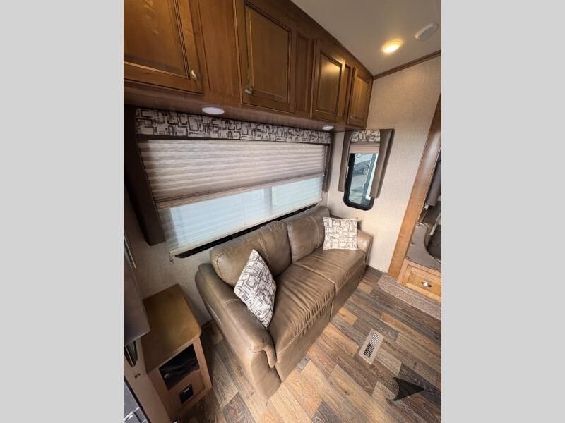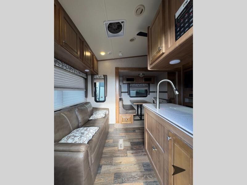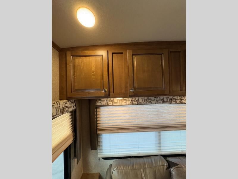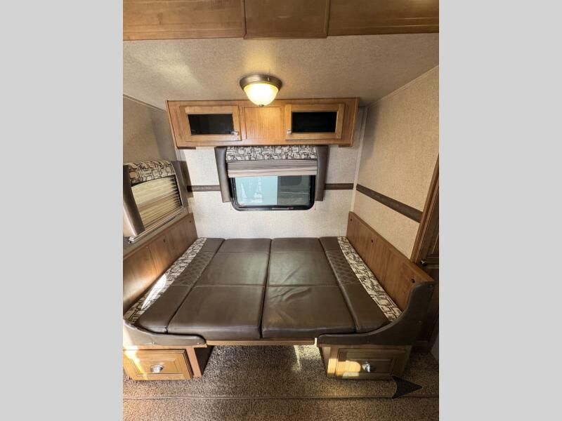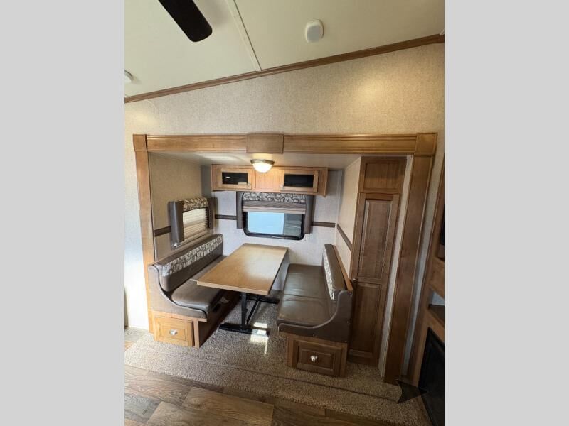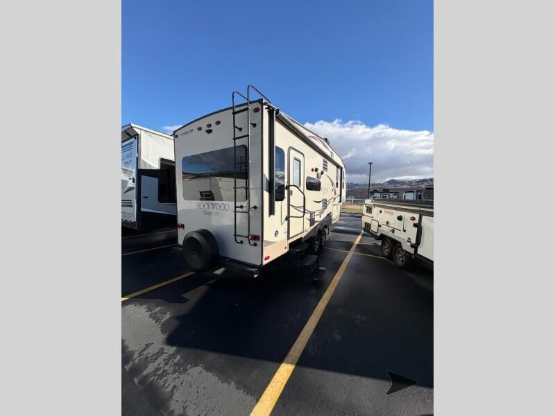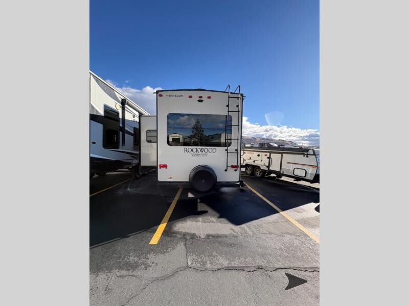 This Rockwood Signature Ultra Lite 8244BS by Forest River offers double slides for more interior space, a rear living area, and a walk through bathroom, plus a front bedroom.As you enter this fifth wheel, along the rear wall you will find a sofa with end tables and overhead cabinets. The road side slide out provides a dinette, pantry, and overhead cabinets. Next to the slide out there is an entertainment center. The opposite side of the slide you will find a countertop extension, double kitchen sink, three burner range, microwave, and a refrigerator.As you step up the stairs, you will enter into the bathroom and bedroom. The walk through bathroom features a radius shower and sink with medicine cabinet on your left, and a private toilet area and linen cabinet on your right. The front bedroom has a queen bed with nightstands within the road side slide out. Along the front wall of you will find a wardrobe with sliding mirror doors, and storage shelves. Across from the bed there is a dresser with an optional TV.There are plenty of overhead cabinets throughout the fifth wheel as well as exterior storage. You can even choose a few options, such as, a gas grill, swivel chairs in place of the sofa, and a free-standing table and chairs in place of the dinette, plus more!