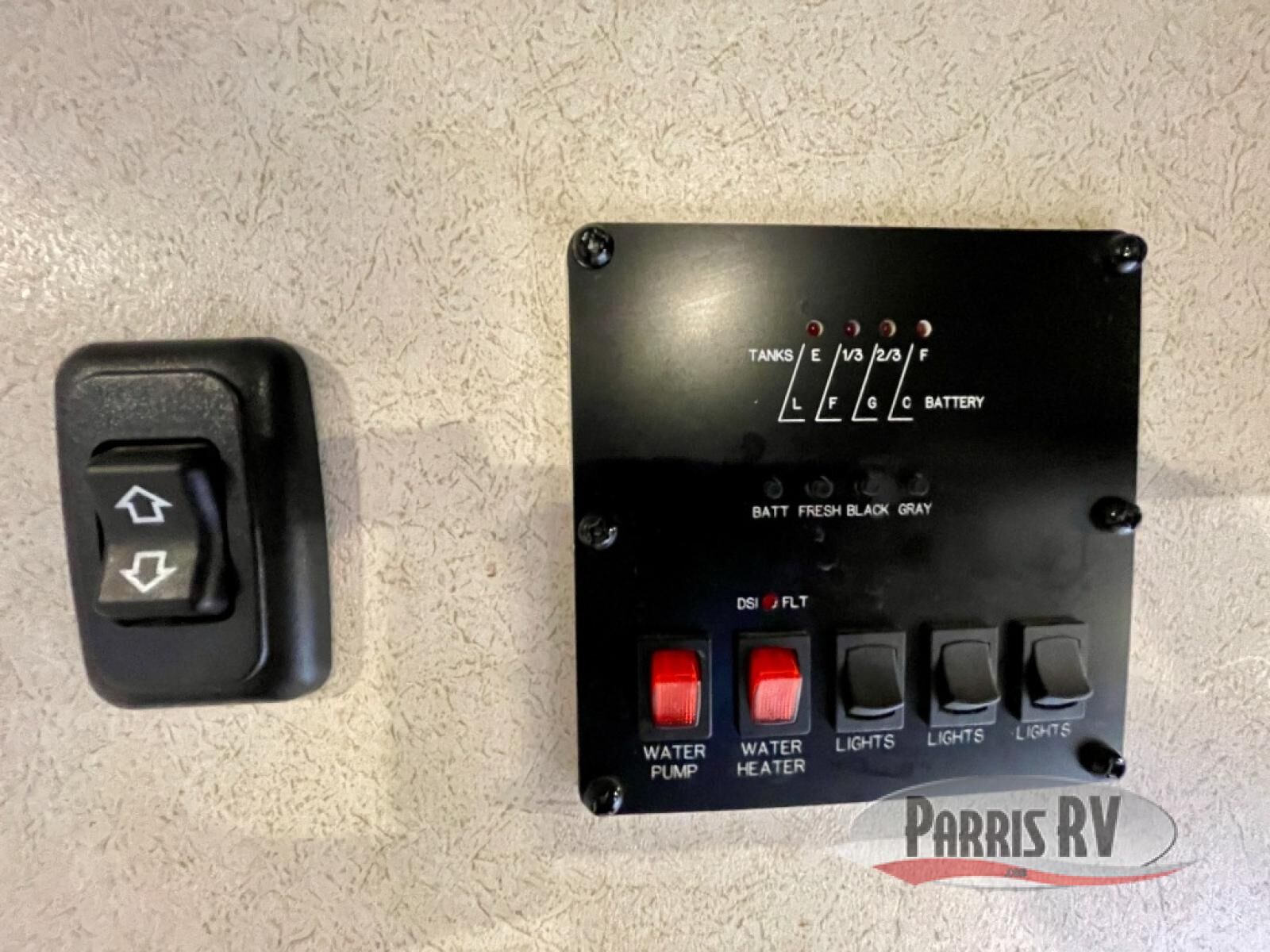 In the rear of the trailer you will find a private bathroom with a toilet and tub. A set of bunks is next to the bath which provides additional sleeping space for your little ones, or added family and friends.