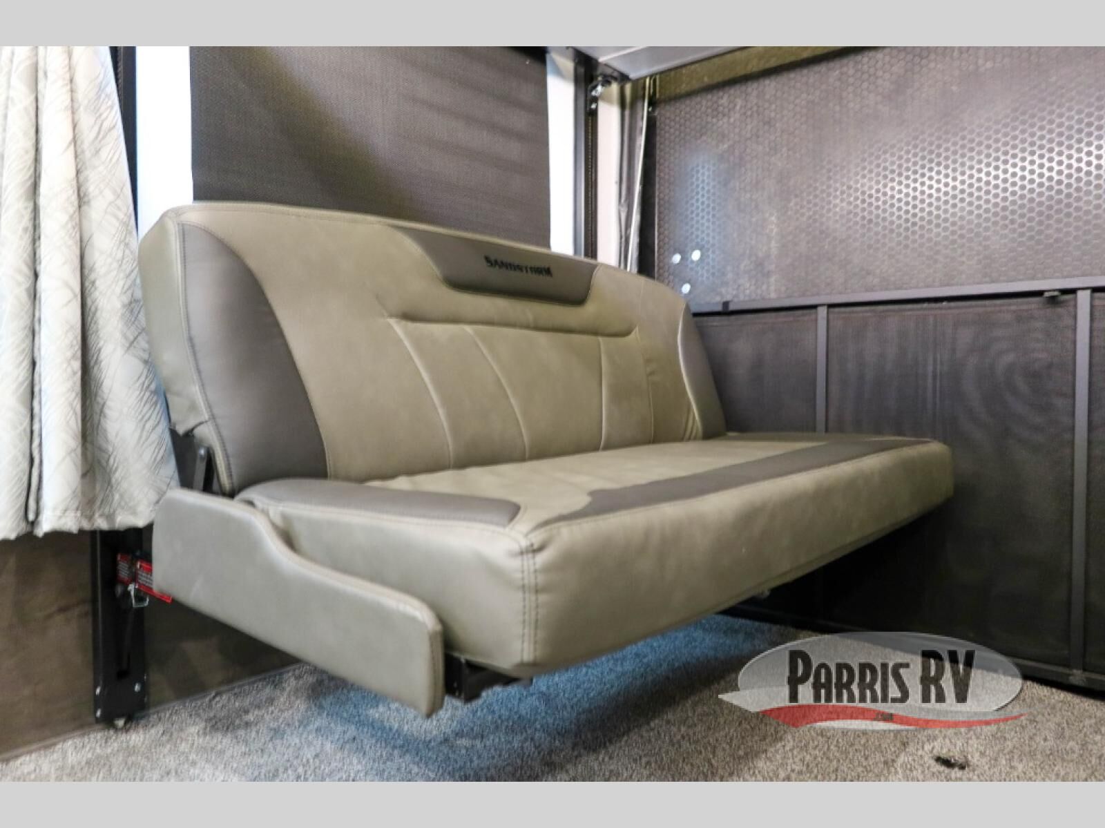 If you and your spouse enjoy hitting the trails, then this Sandstorm toy hauler is for you! You can easily load and unload your off-road toys with the 3,000 lb. ramp door, and the tie-downs are mounted into steel so that you can be sure your toys will arrive safely. When you're ready to wind down your nights, you can head into the front private bedroom and relax on the queen-size bed or entertain a few guests at the electric pass-through dinette which can also transform into an extra sleeping space. You can even choose to add the optional chairs with table for a comfortable place to read a book at night!
