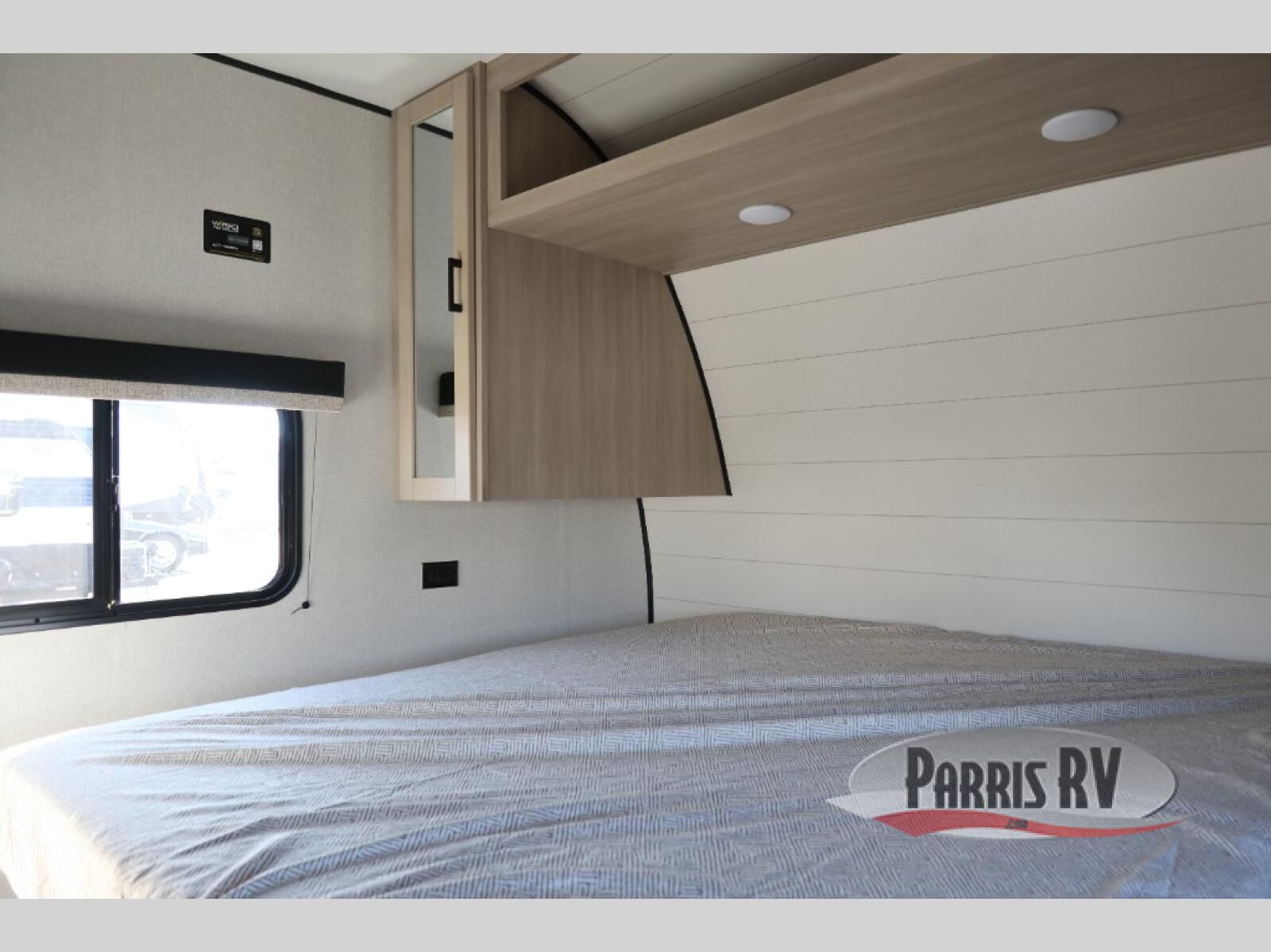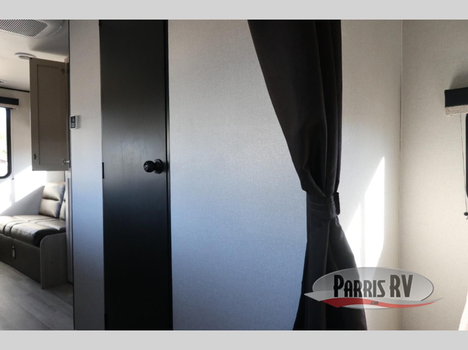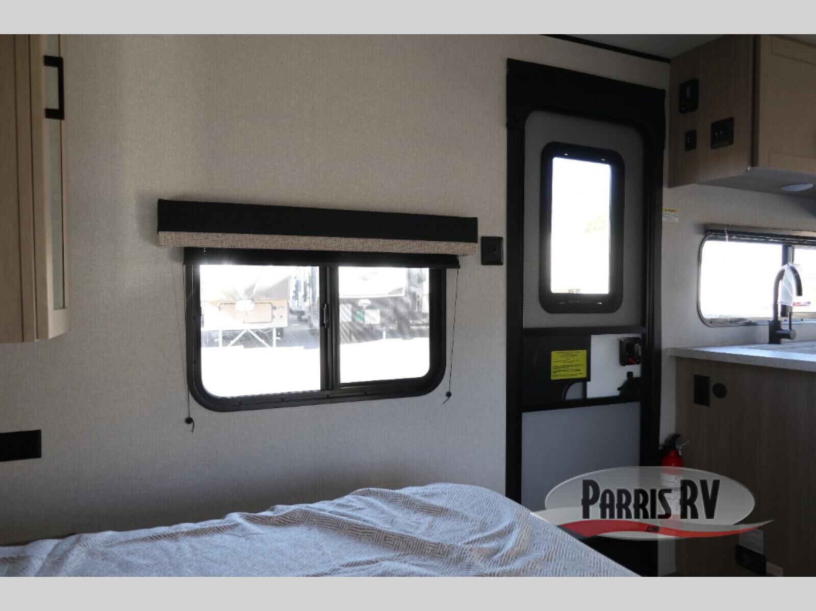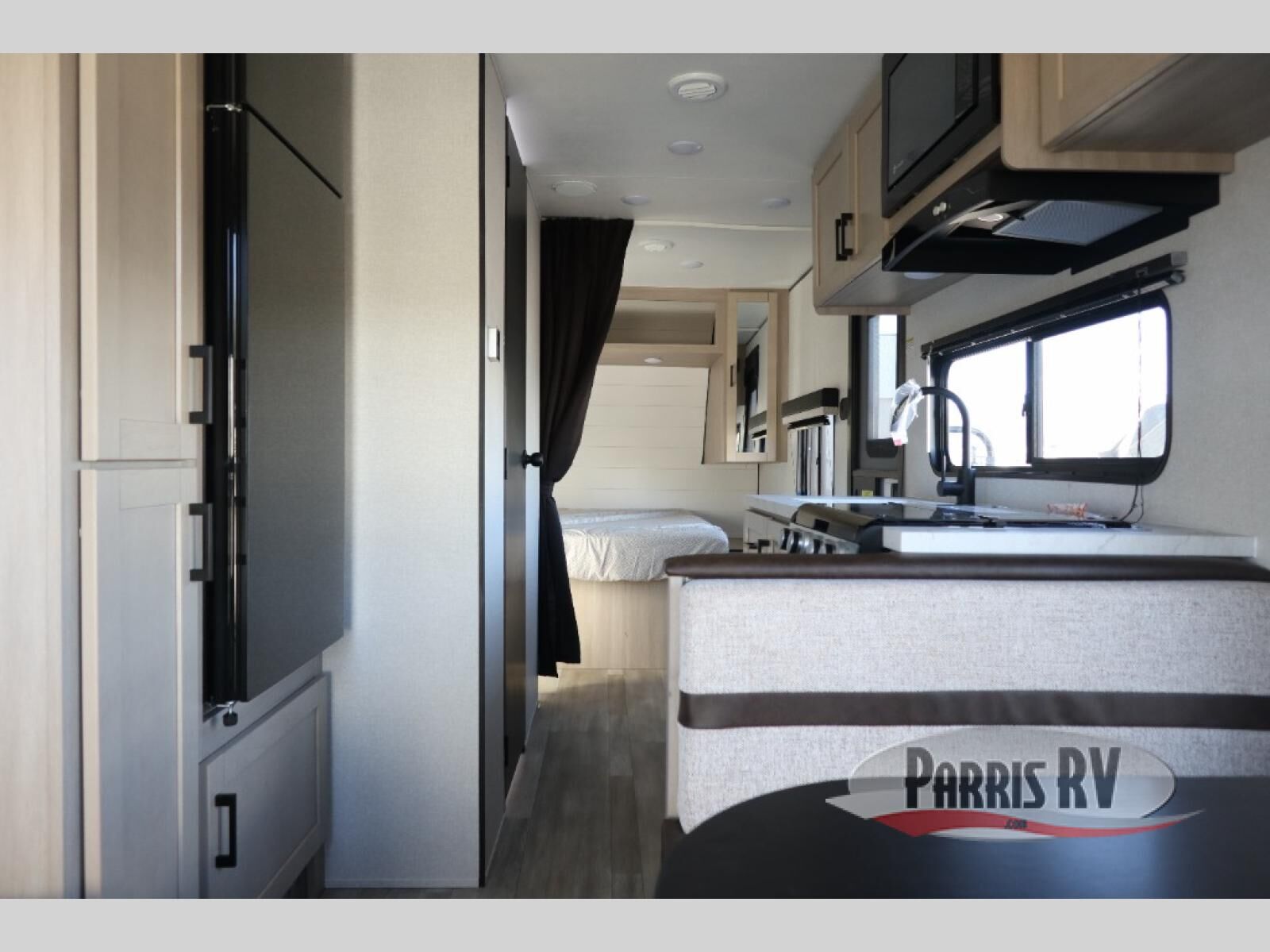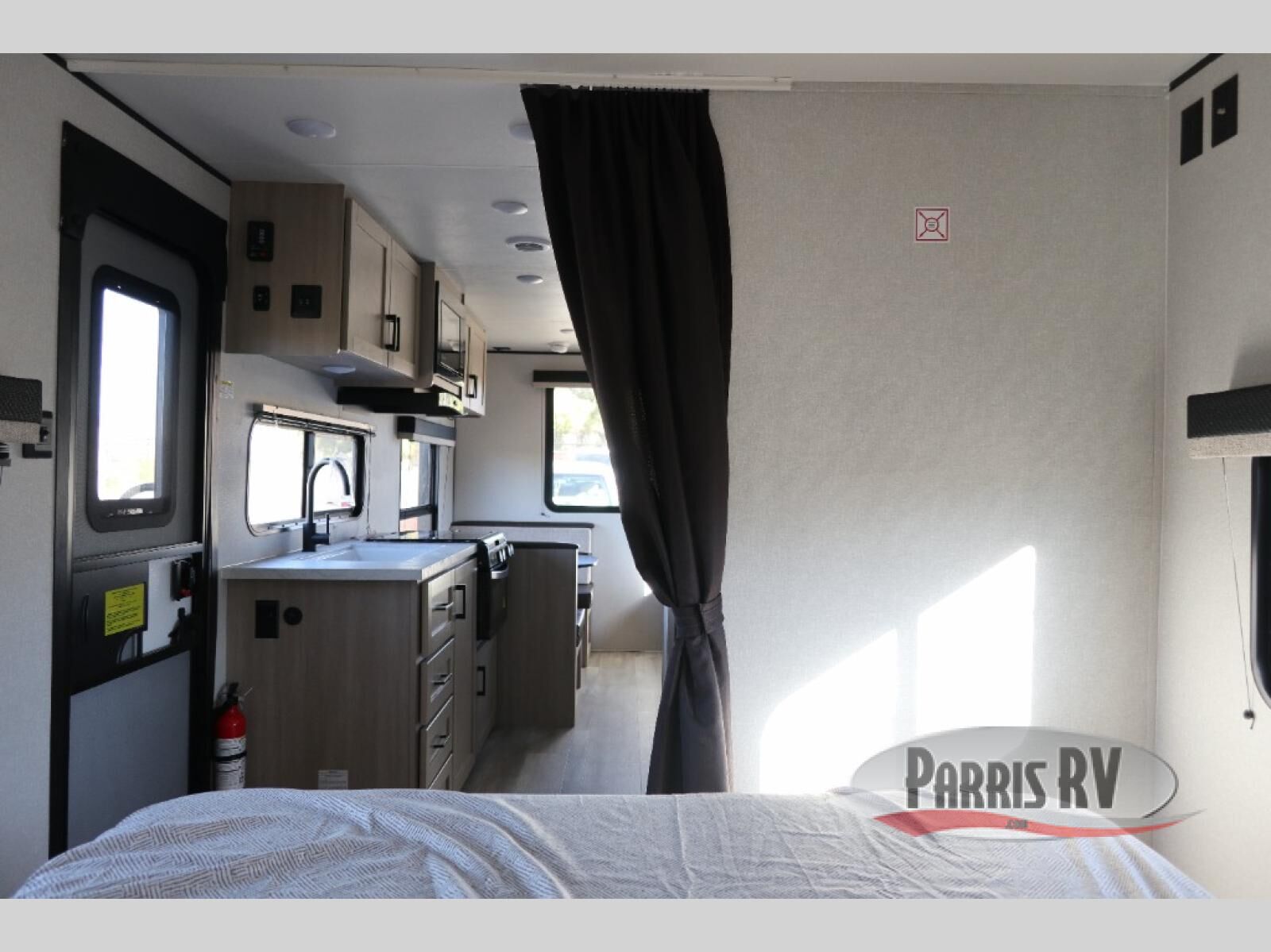Weekend trips to the campground will be made unforgettable in this travel trailer for five to six. You will enjoy your own space in the front bedroom with a privacy curtain, RV queen bed and dual bedside wardrobes to keep your things tidy. If you have any guests staying over, then can convert the jack knife sofa and booth dinette back into seating spaces for breakfast in the morning. Speaking of breakfast, you'll have a three-burner cooktop and microwave oven to cook eggs and bacon, plus an 8-cu. ft. 12V refrigerator and pantry for food storage.