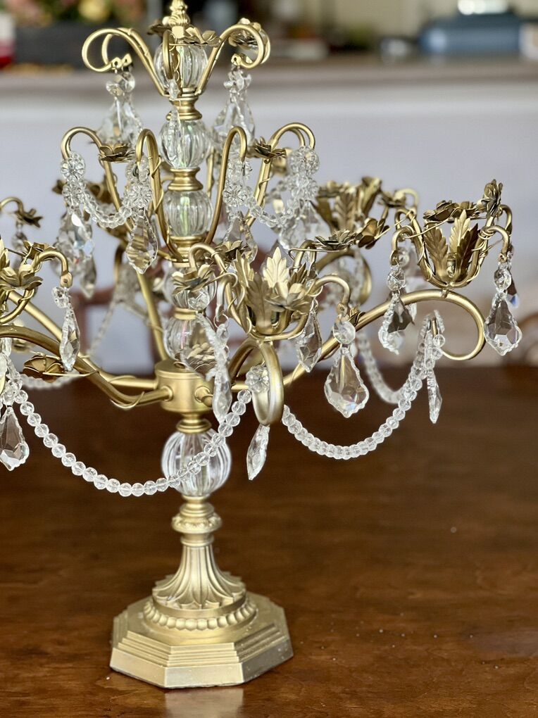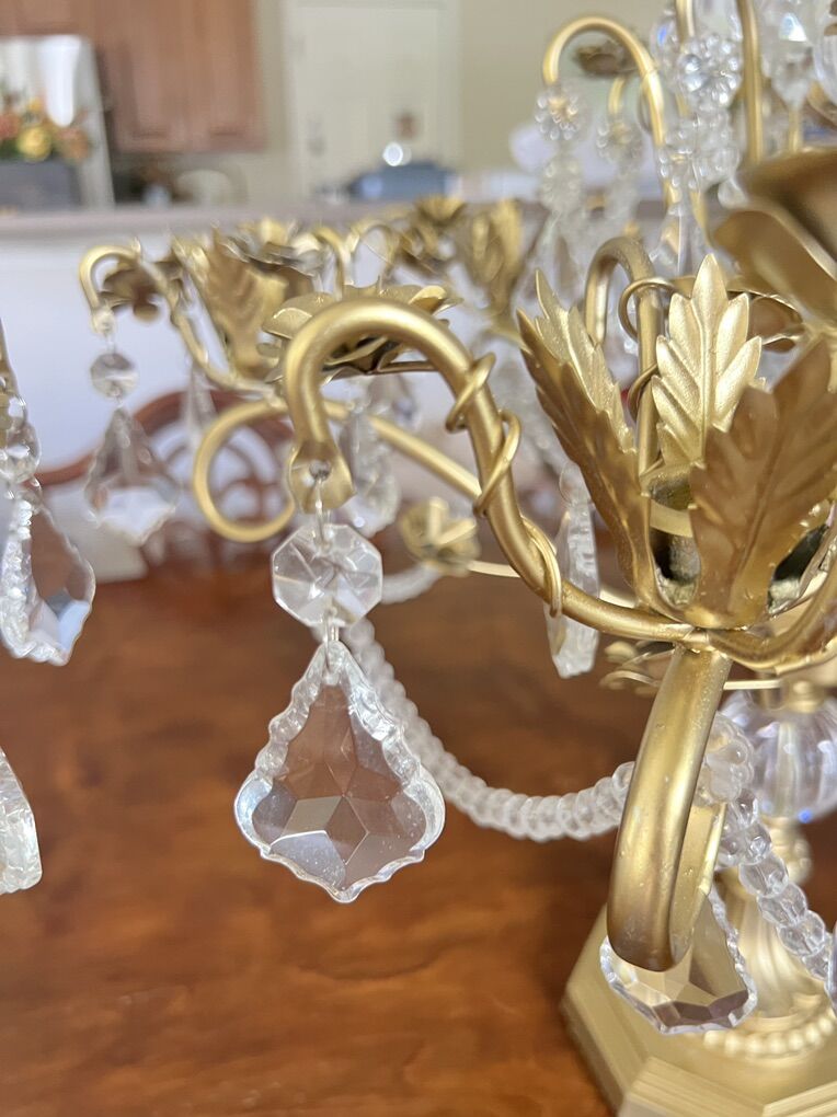 VenmoCandelabra 6 Stem $300 Both 22”H 24”D I have 2 of these plus 9 matching pieces that hold single candle. The crystals are glass. $200 for the nine other candles if you buy the large ones