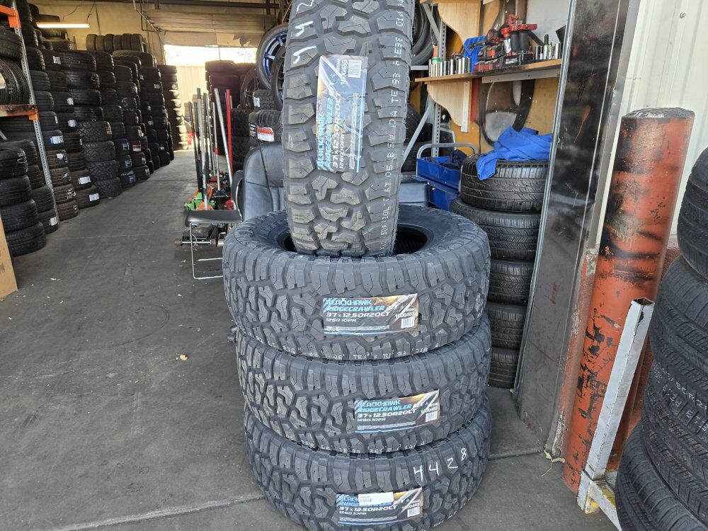 BRAND NEW SET BLACKHAWK RIDGECRAWLER R/T Size 37X12.50R20LT . Free mount, balance, and brand new Valve stems. $1250+Tax LOAD RANGE E 10PLY Also check out our GOOGLE reviews to assure you’re in good hands, just search (Oliver Tires) We also offer lots of other sizes new and used. Call or text for availability Espańol; 8016885139 Office: 8016620227 Or come visit us at 3010 west 500 south Salt Lake City Utah