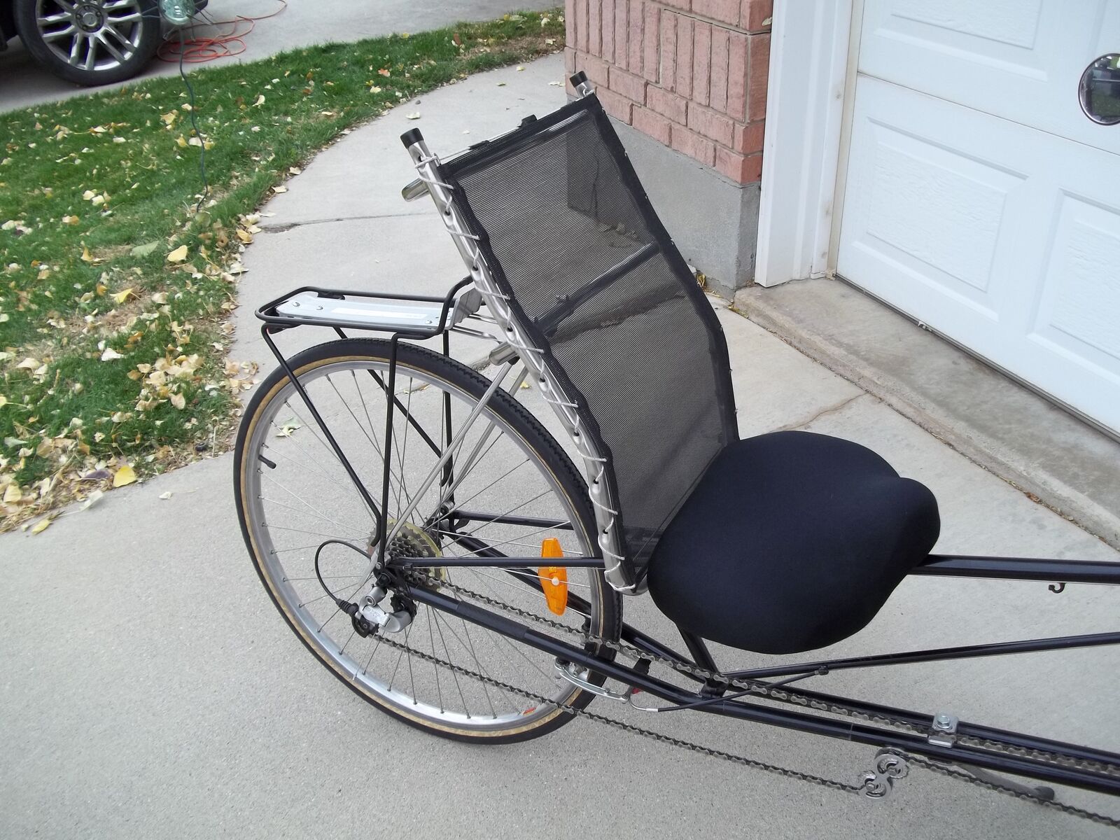 The bike measures nearly eight (8) feet in length...making for a smooth road riding experience. It has a comfortable easy to adjust padded seat and mesh back rest. Accomodates riders 5' tall to over 6' with no tools required to slide the seat or adjust the back.