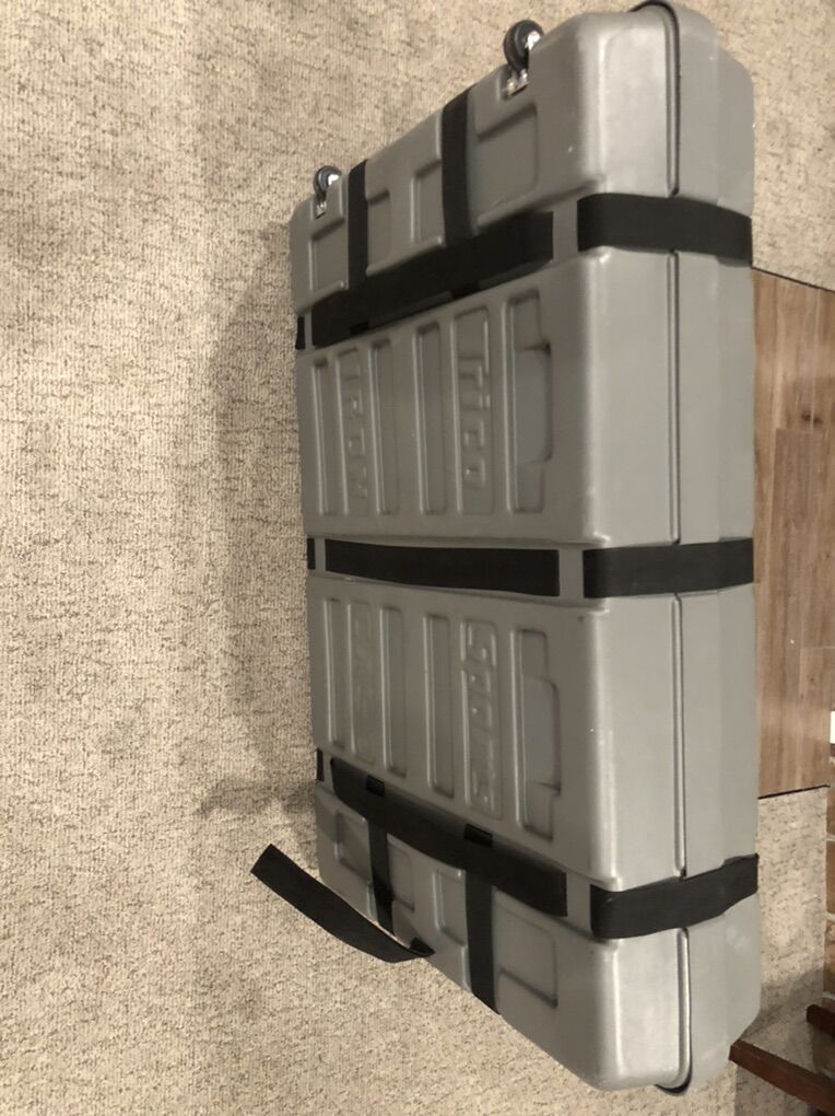 VenmoTrico sports iron case Bike shipping case Great shape Rock solid case, safest way to ship your bike. 7 straps to secure it 3 layers of 2” foam to keep it all safe, tight Fork and triangle spreader to hold them tight Ups and fedex approved size