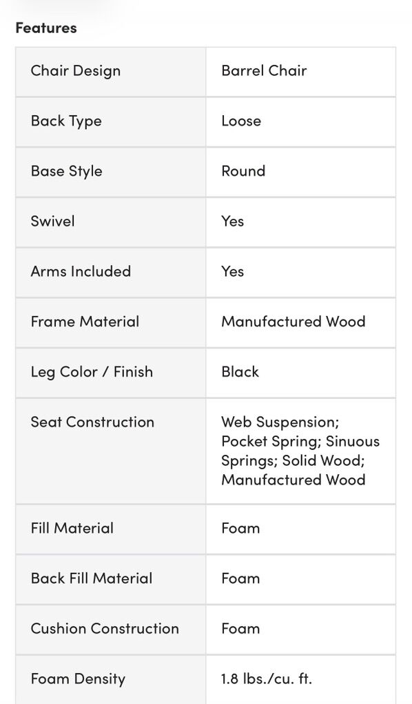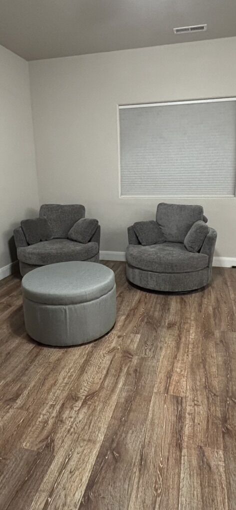 ZelleSwivel chairs x2, ottoman optional. Full assembled, cushions x4 for each chair. Removable and washable covers. Very comfortable, just no longer needed for my space.