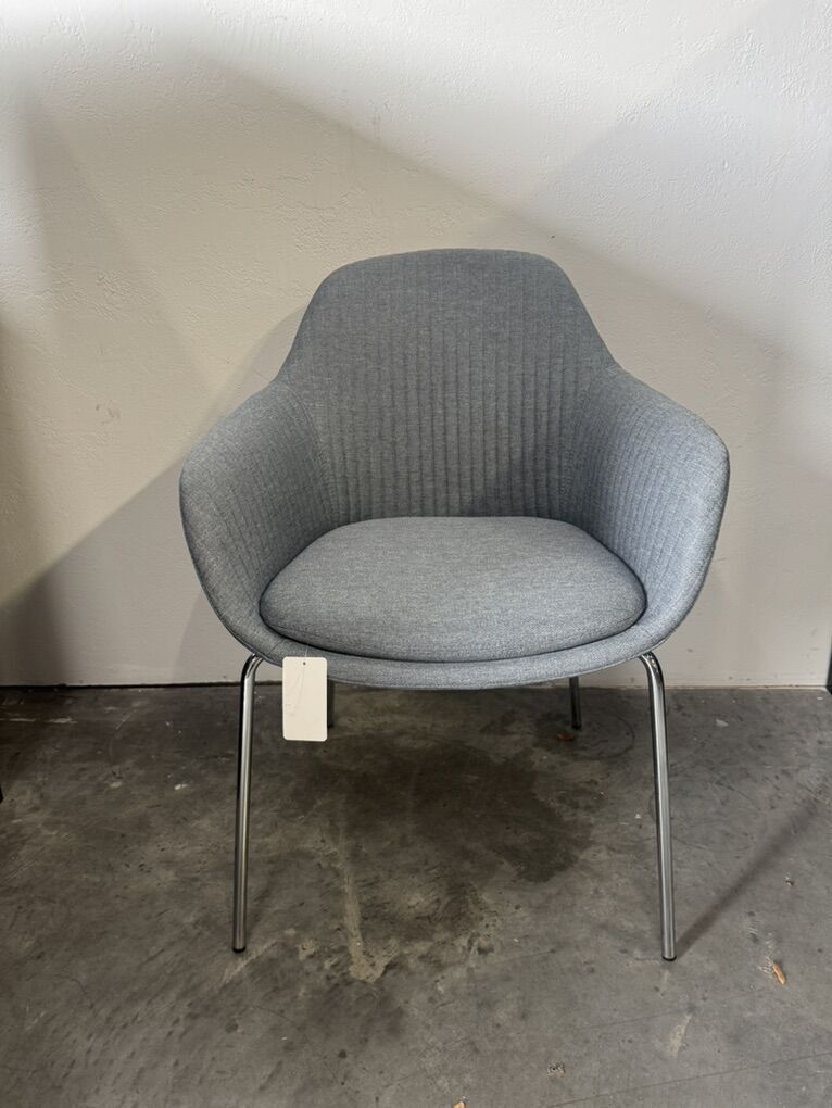 Upholstered office guest chair with chrome legs by Friant. 4 chairs available.