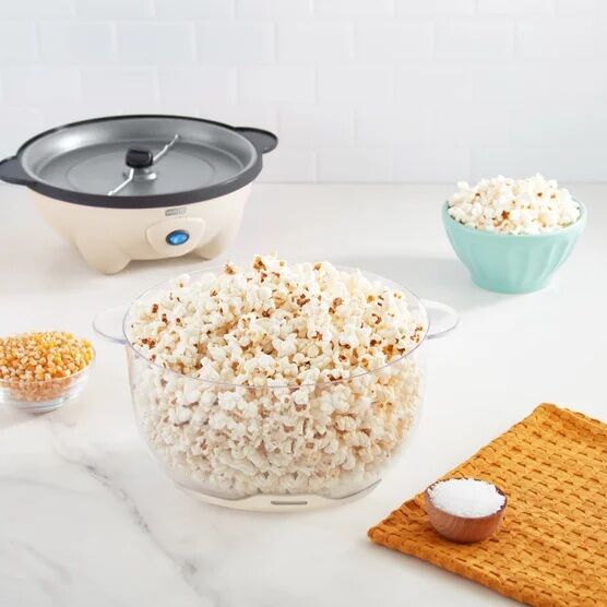 Pop up to 20 cups of fresh, buttery popcorn with the Dash SmartStore™ Stirring Popcorn Maker! No need for a stove or microwave—just add your kernels, a little oil, and flip the Power Switch to start the popping party! The Popping Bowl doubles as a Serving Bowl, just flip to serve up a delicious movie night to the whole film crew. The Serving Lid features a versatile Measuring Cup for precision popping just the right amount. The ceramic nonstick coating makes cleanup a breeze, so you can focus on the fun. And with the intuitive SmartStore™ Design, all pieces nest neatly inside the Base & Bowl for sleek & compact storage. Get popping and enjoy delicious homemade popcorn in no time—Recipe Guide included!