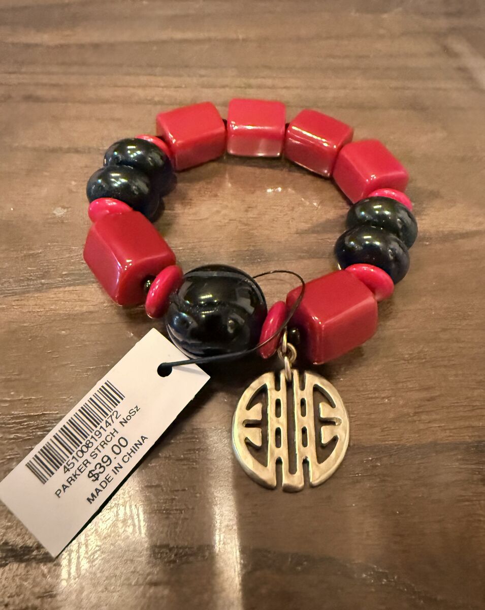 VenmoBeautiful women red, black, and gold Chicos bracelet. It is new with tags. Cash or Venmo.