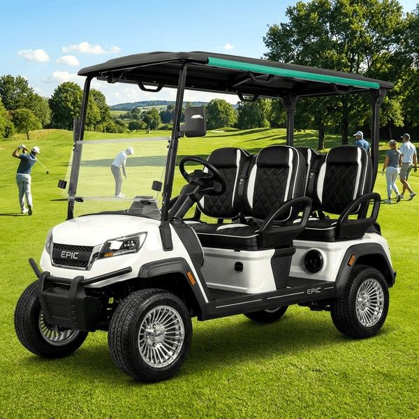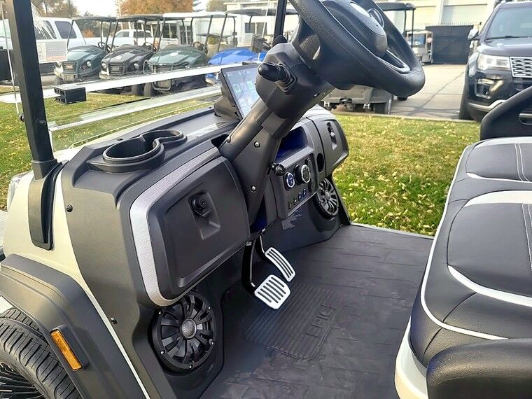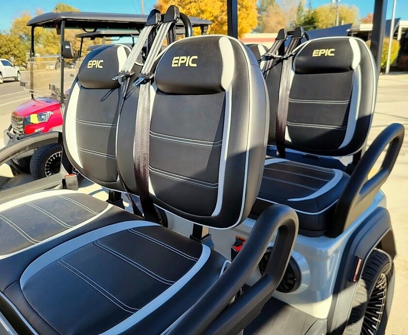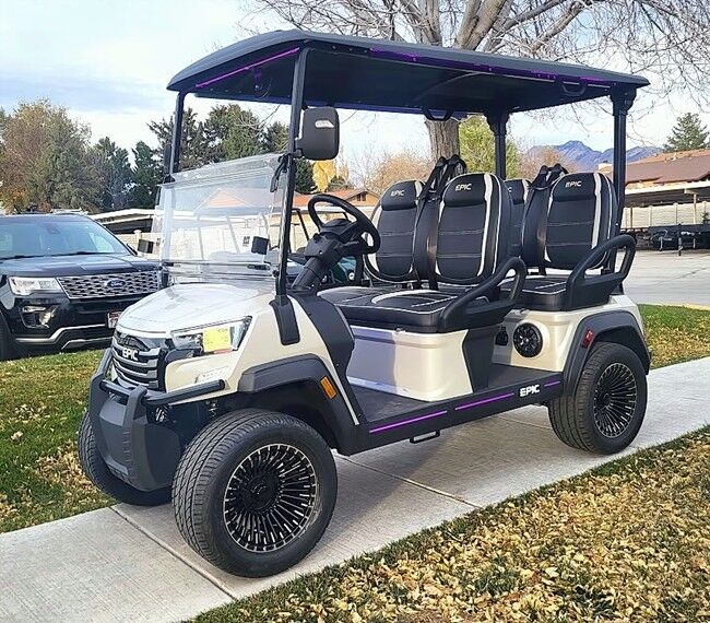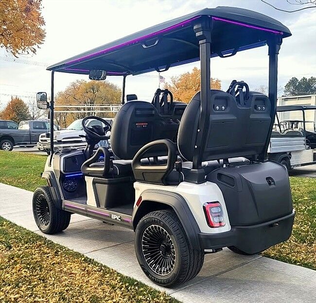 Just Landed: The Hottest Golf Cart on Available Today Meet the 2026 EPIC E40FX in jaw-dropping Metallic Pearl White. This isn’t a golf cart; it’s a 4-passenger, lifted, lithium-powered party on wheels. Built by ICON EV and loaded at Intermountain Golf Cars, it’s ready to own the course, the cul-de-sac, or the campsite.