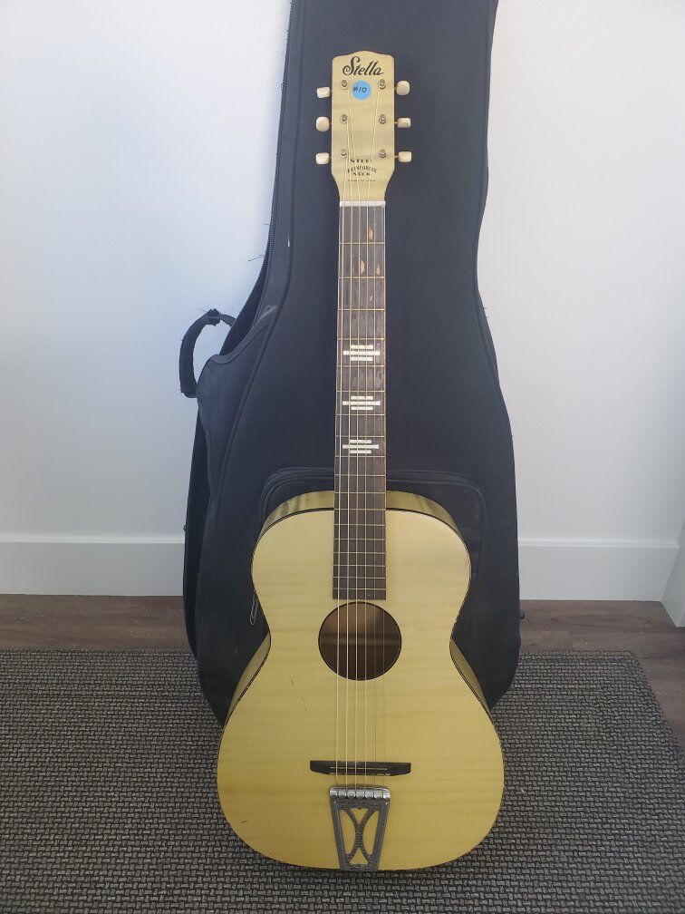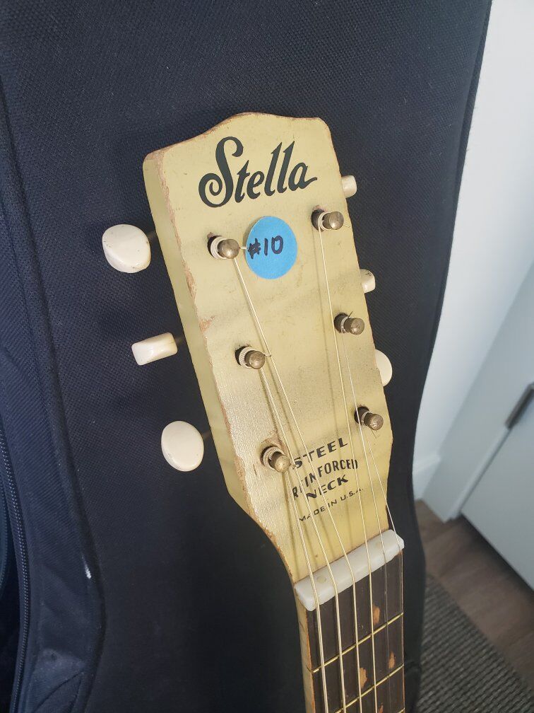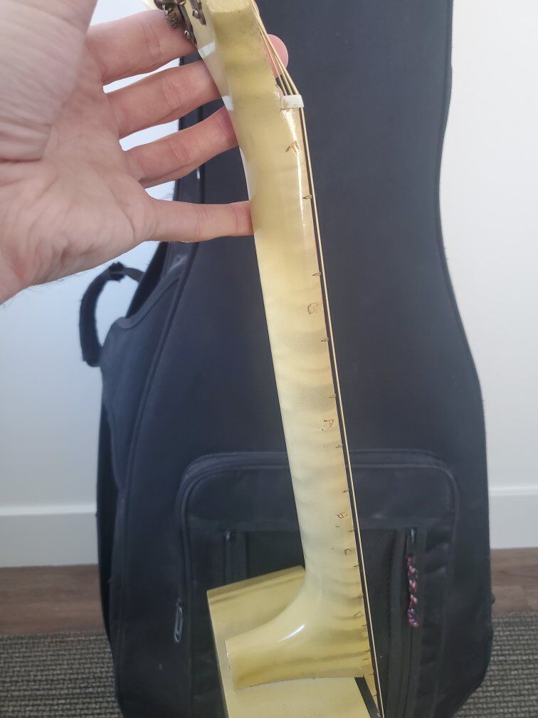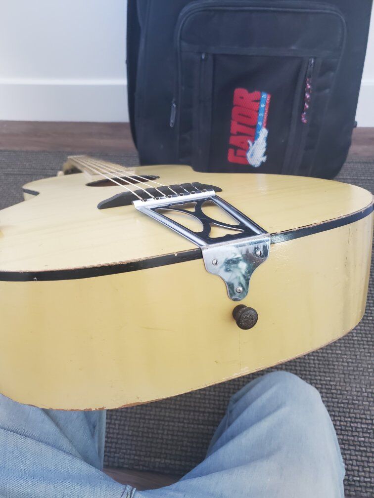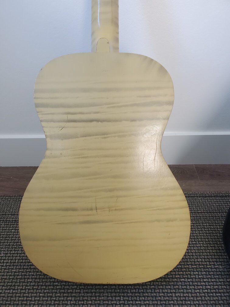 Guitar is in very good condition considering its age. Has some normal wear from use. The neck has some lettering inscribed along the edge in the finish. It has brand new strings.