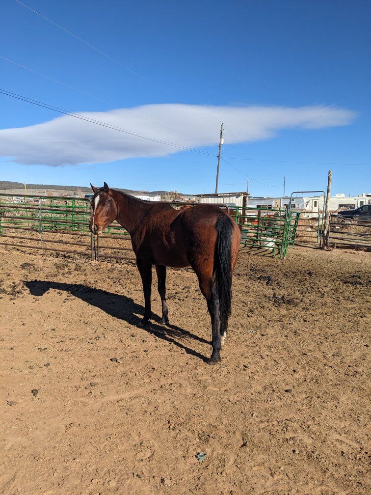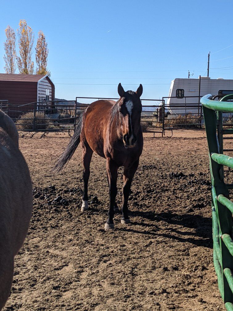 CLEO is home raised in your pocket. has only had a few small rides . she loades and leads has change of direction on and off. the last ride she got spooked from a dog and bucked her rider off. we raised her as a ranch horse but don't have the time she needs and we just don't have the time. perfect kind home a must. experienced rider a must so she doesn't learn bad habits. but she's a clean slate and is fast. just over 14 hands . lasal Utah 1.6k. home raised.her mom was very cowy! dad was a tank.! can deliver within 300 miles for 3$ per mile one way.