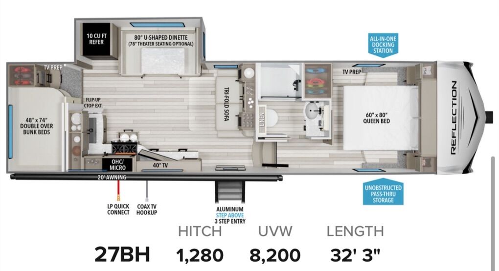 Venmo32’ Bunkhouse 5th Wheel camp trailer. Sleeps 6 comfortably. Large common area, large bunks. Roof mounted solar panel. PullRite hitch included. Large outside bins for storage. Recently purchased brand new, but not used as much as expected. Asking $48,000obo.