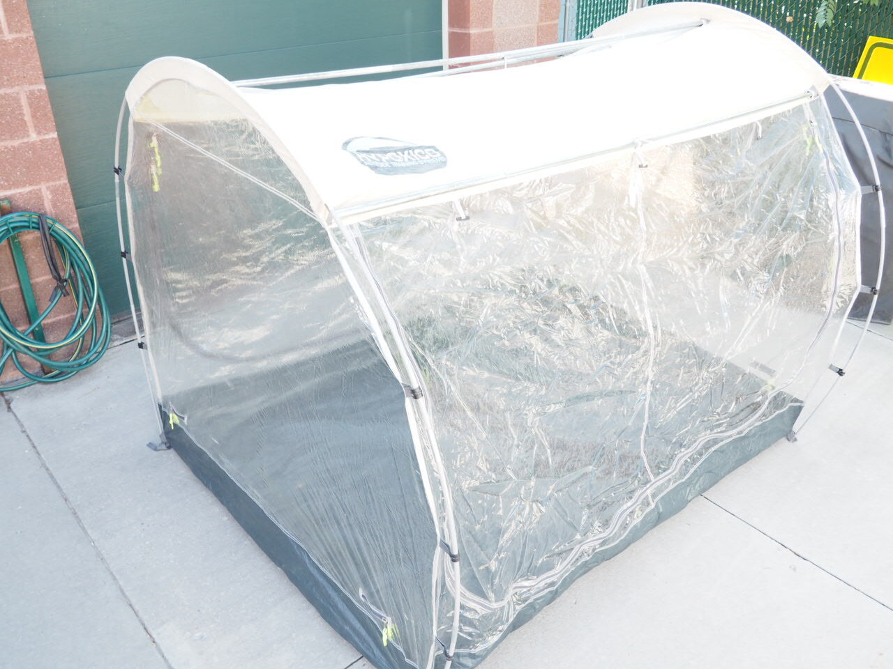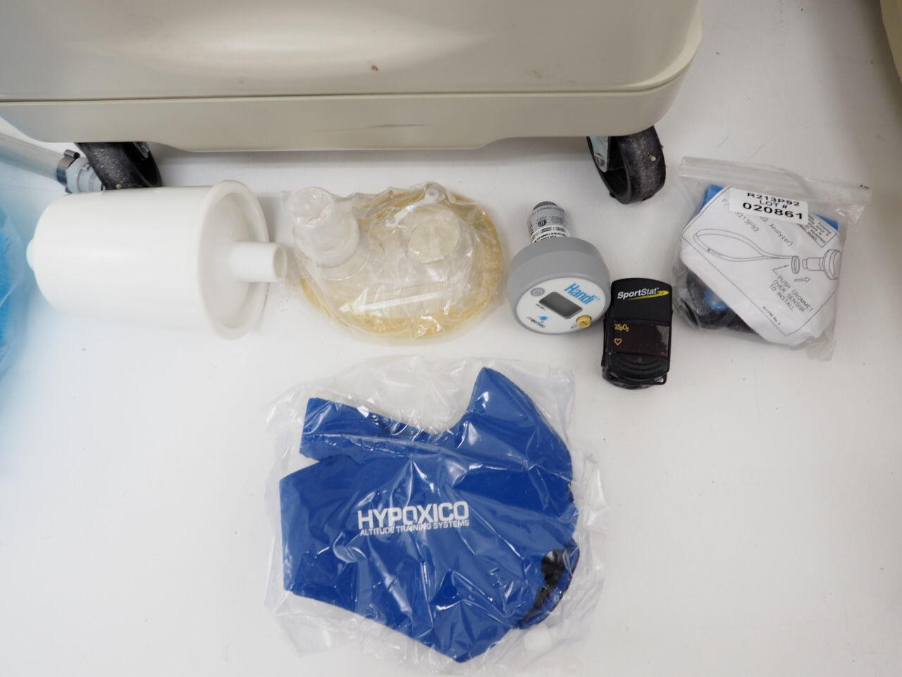 4/5 : Excellent used condition - The generator and tent appear to have been lightly used, generator powers on and operates as it should. Tent has small debris on floor and a small tear in the pole holder that does not affect it use at this time. The training mask and universal mask circuit are in original packaging. This package has a lot of life left in it!
