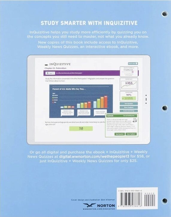 Include access to InQuizitive, Weekly News Quizzes, an interactive ebook, and more!