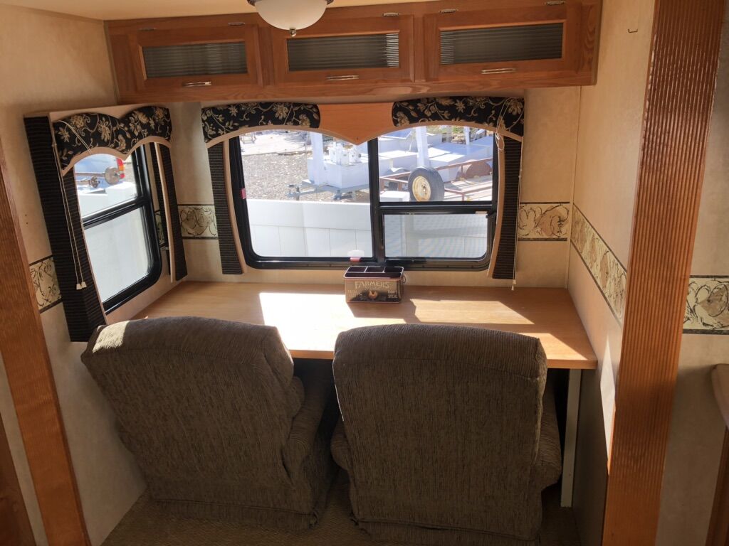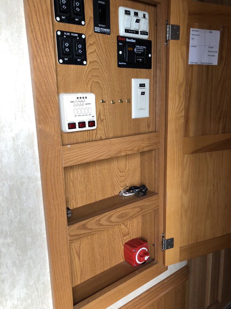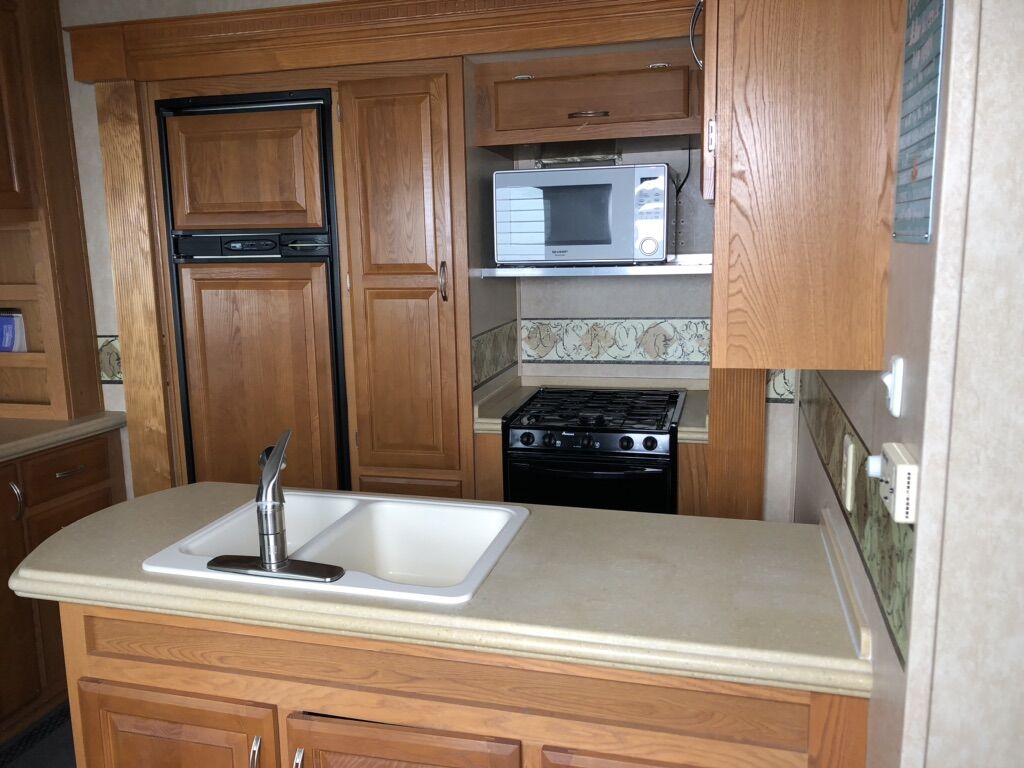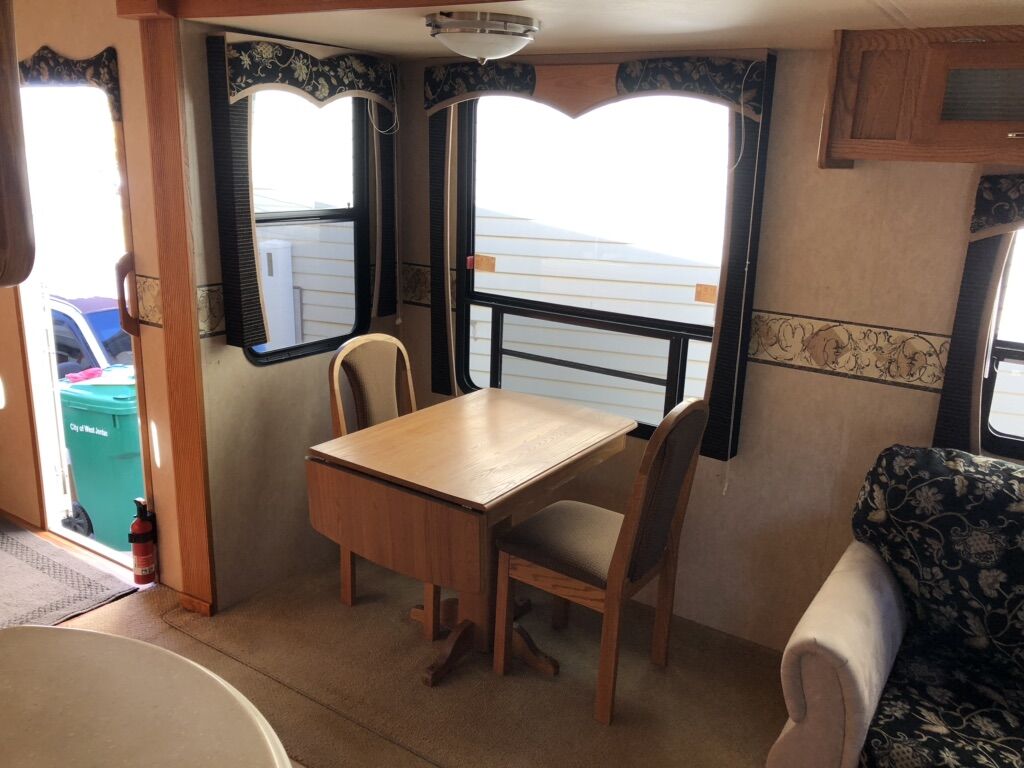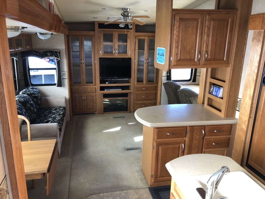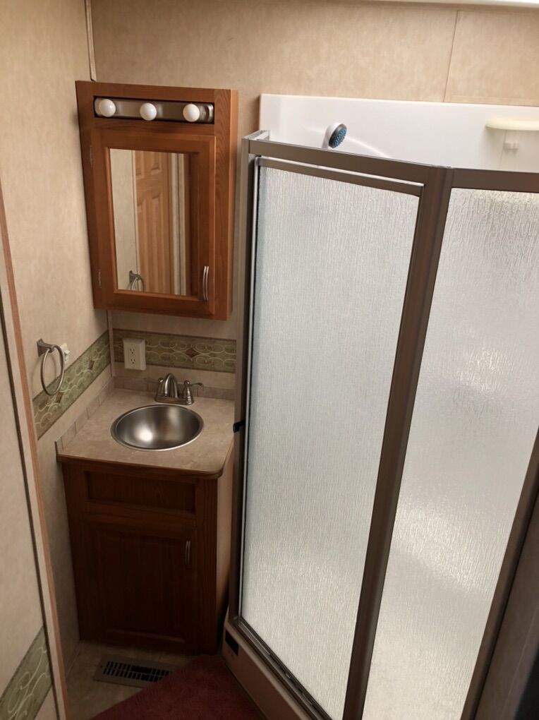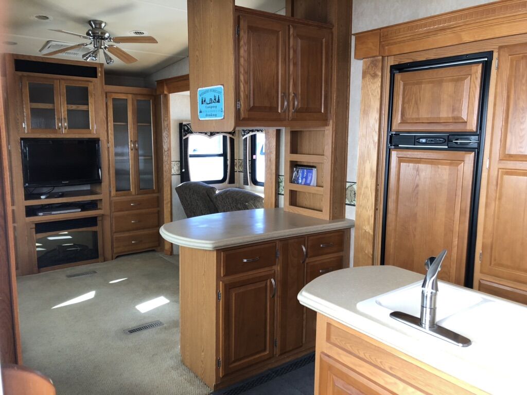Approximately 38 ft long, 4 slides, 2 A/C units, 18ft electric awning, electric fireplace, ceiling fan, tall ceiling, 10gal water heater, washer and dryer, central vacuum, tinted and very big windows, florescent lights replaced with new LED ones, real wood cabinet doors throughout, Newer 14 ply tires with about 1,000 miles on them, generator ready, new fabric on slide outs and shade awning, roof recovered and sealed, All appliances serviced in the last month, everything in working order. Ready to go! No trades.
