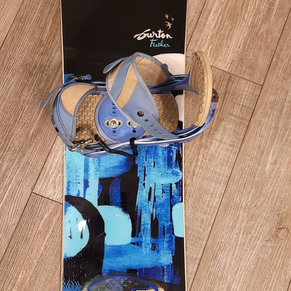 Burton Feather 49 149cm Snowboard w /Burton medium Stilleto Bindings. Good used condition
