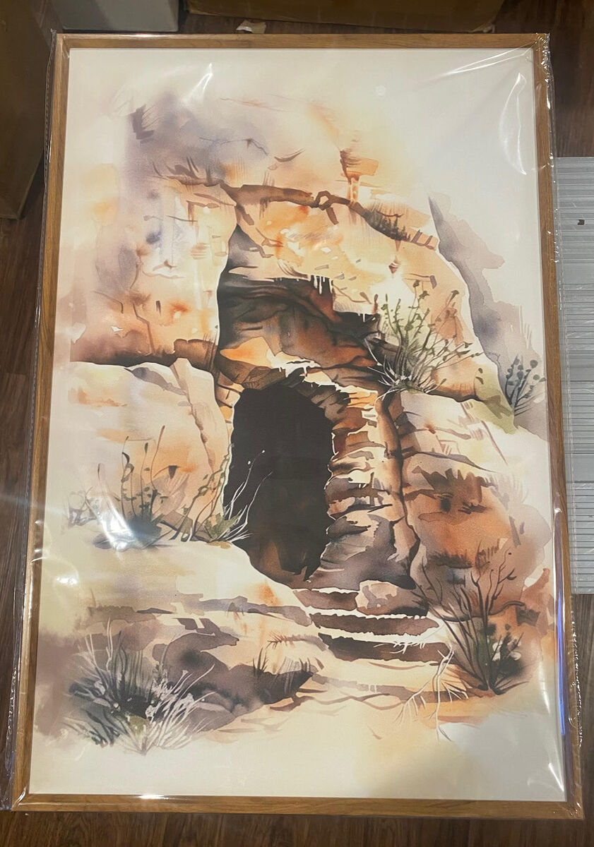 ApplePay3Pcs Jesus Canvas Wall Art Bible Stories Wall Decor God Resurrection Ascension Painting Pictures Empty Tomb Cross Poster Prints for Bedroom Prayer Room Church Easter Home Decoration 16"x24"