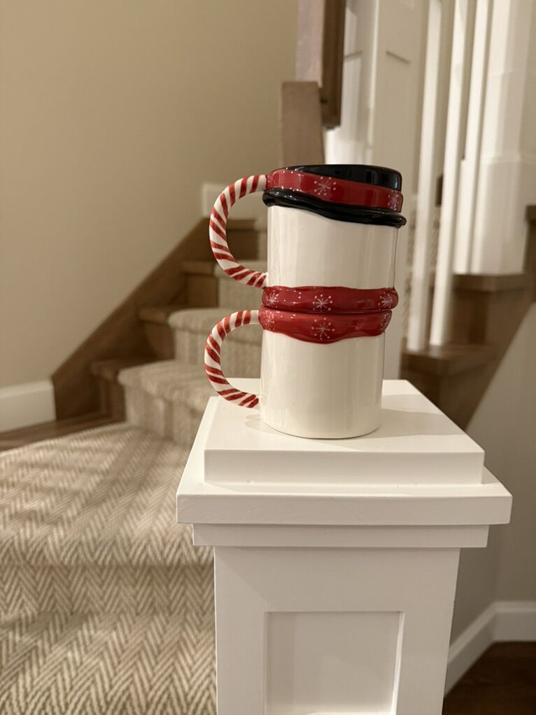 Set of 2 ceramic stacking snowman mugs. Great gift for the holidays.