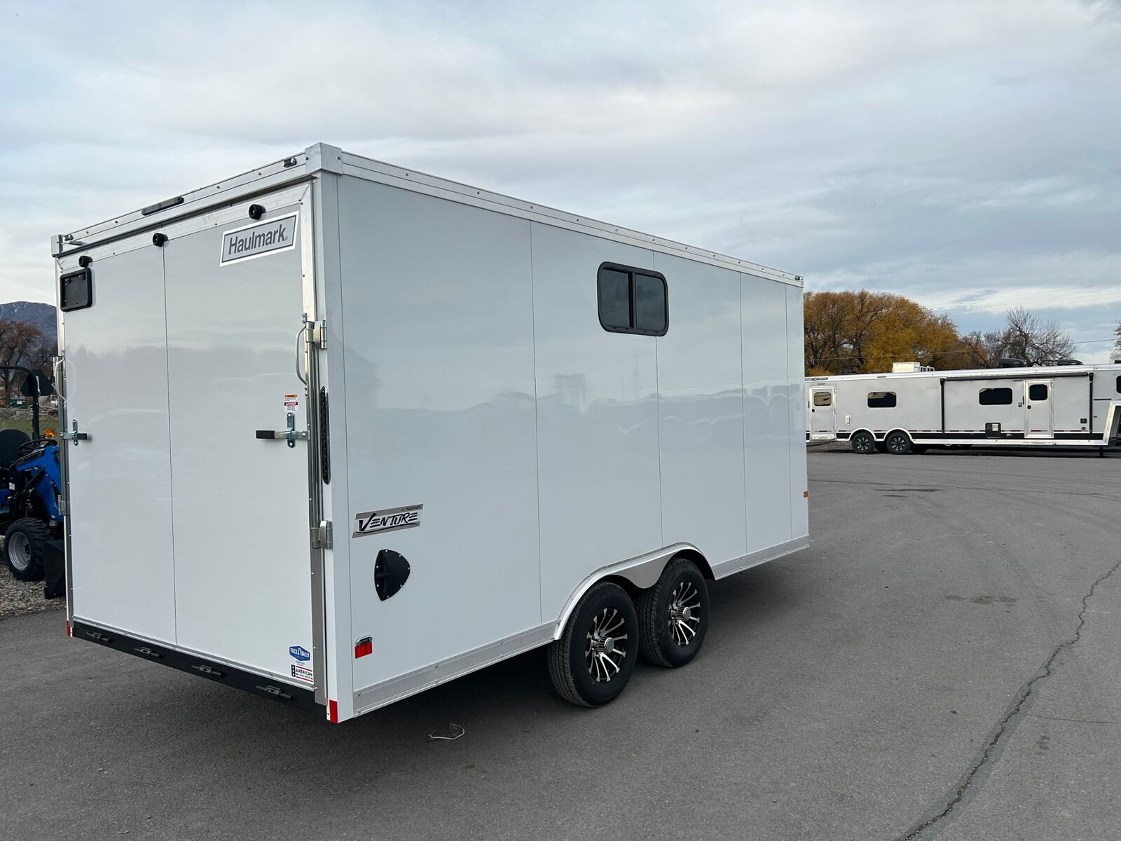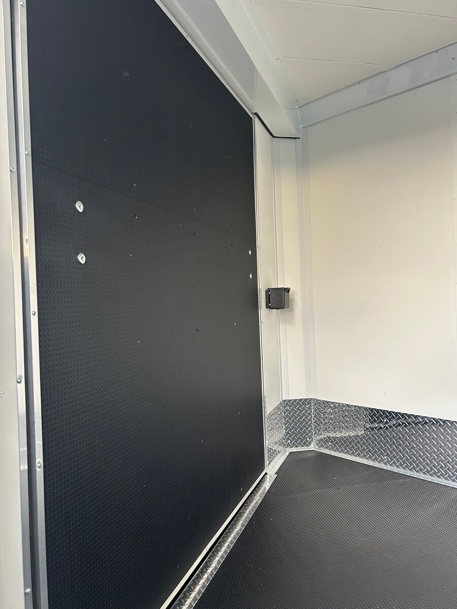 The new Haulmark steel VENTURE mid-deck is your “can do” multi-purpose trailer for your powersport toys. Nothing compares to steel when it comes to strength and durability. Ramp doors, front & rear, means there’s nothing slowing you down. The mid-deck platform height is a hybrid design with drive over wheel boxes. Perfect for sleds, quads, ATV’s and motorcycles. 1-Piece Aluminum Roof 3/4" PlexCore High Performance Decking White Vinyl Sidewall Liner 24" ATP Stoneguard 15" Radial Tires Dexter Torflex Suspension Smooth Aluminum Fenderettes Steel Fold-Out Step Front Ramp Door with Spring Assist Rear Ramp Door with Spring Assist Recessed 5,000 lb. D-Rings with Backing Plates Flow-Thru Sidewall Vents 14" x 14" Non-Powered Roof Vent Rear ID Bar with Integrated Loading Light 16" OC Floor Crossmembers 16" OC Roof Bows 3-Year Limited Warranty .030 Aluminum Exterior - Bonded (Smooth Appearance) 36" Side Door w/ Flush Lock 12v Clear Lens LED Exterior Lighting 16" OC Tube Vertical Posts Silver Viper Aluminum Wheels 2,000 lb. Front Wind Tongue Jack 12" ATP Kickplate Mid-Deck Platform with Drive Over Wheel Boxes 6' V-Front with Polished Aluminum Nose