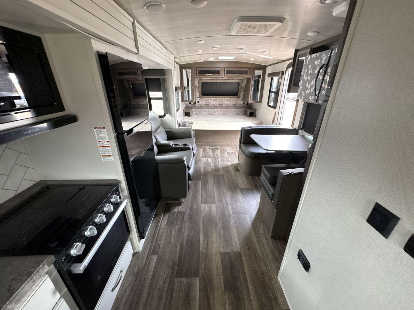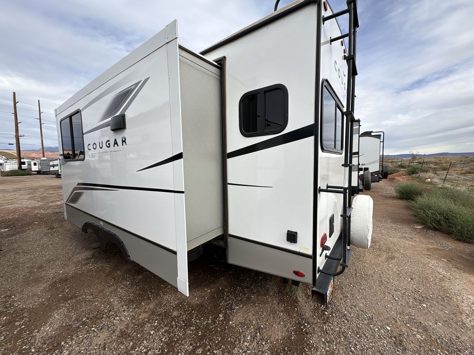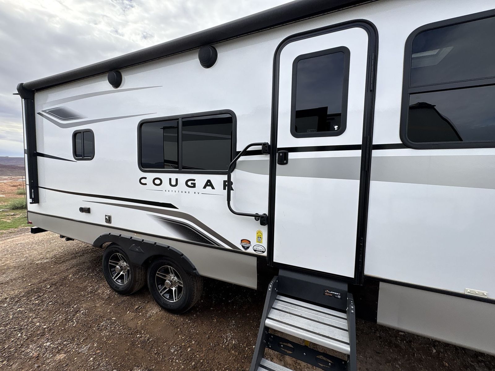 Keystone Cougar Half-Ton travel trailer 22MLS highlights: King-Size Bed Theater Seating Booth Dinette Large Slide Pass-Through Storage With a king-size bed, this Cougar Half-Ton travel trailer shows that you can still be comfortable even while you're away from home! The bed has wardrobes and nightstands on either side, and it also has a privacy curtain to section it off from the rest of the trailer. When you use the LCI Solid Step entry to get inside, you'll notice and appreciate the shoe cubby to your left. Right next to the booth dinette is the pantry, and next to the pantry is the full bathroom which is certainly one of the most valuable features to any trailer. The Keystone Cougar Half-Ton fifth wheel and travel trailers are known as one of America's favorites for a reason! Some of those reasons are the exclusive features that come from Keystone, like the preparations for 4G and Wi-Fi, the in-floor heating ducts, and the Hyper Deck flooring. The Cougar Half-Ton has a Climate Guard protection package to keep you safe during inclement weather, and you'll also find an iN-Command Generation 3 with global connect. Use the 21" Furrion range with Piezo ignition to create all of those familiar meals from home, and take charge of how you camp with the SolarFlex 200solar power system which has been fully integrated during the building process so that you don't have to worry about trying to add it on after purchase. This system provides continuous charge to ensure the operation of 12V systems and to protect your battery.