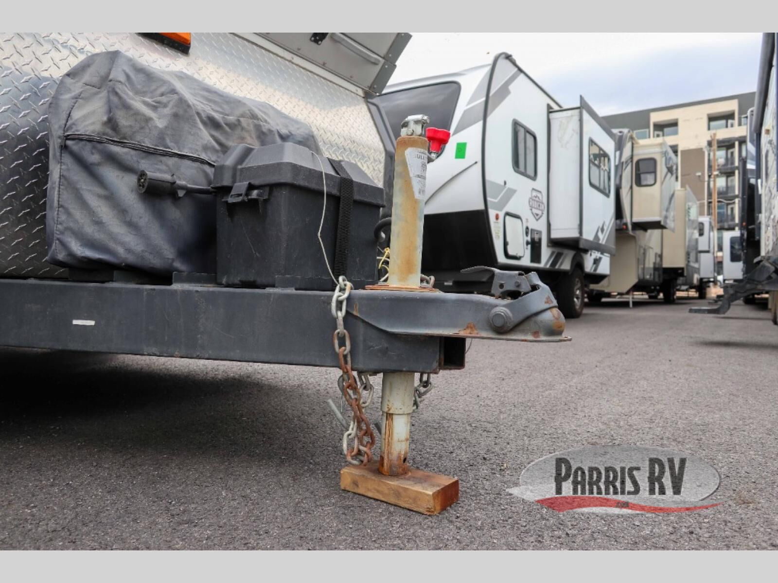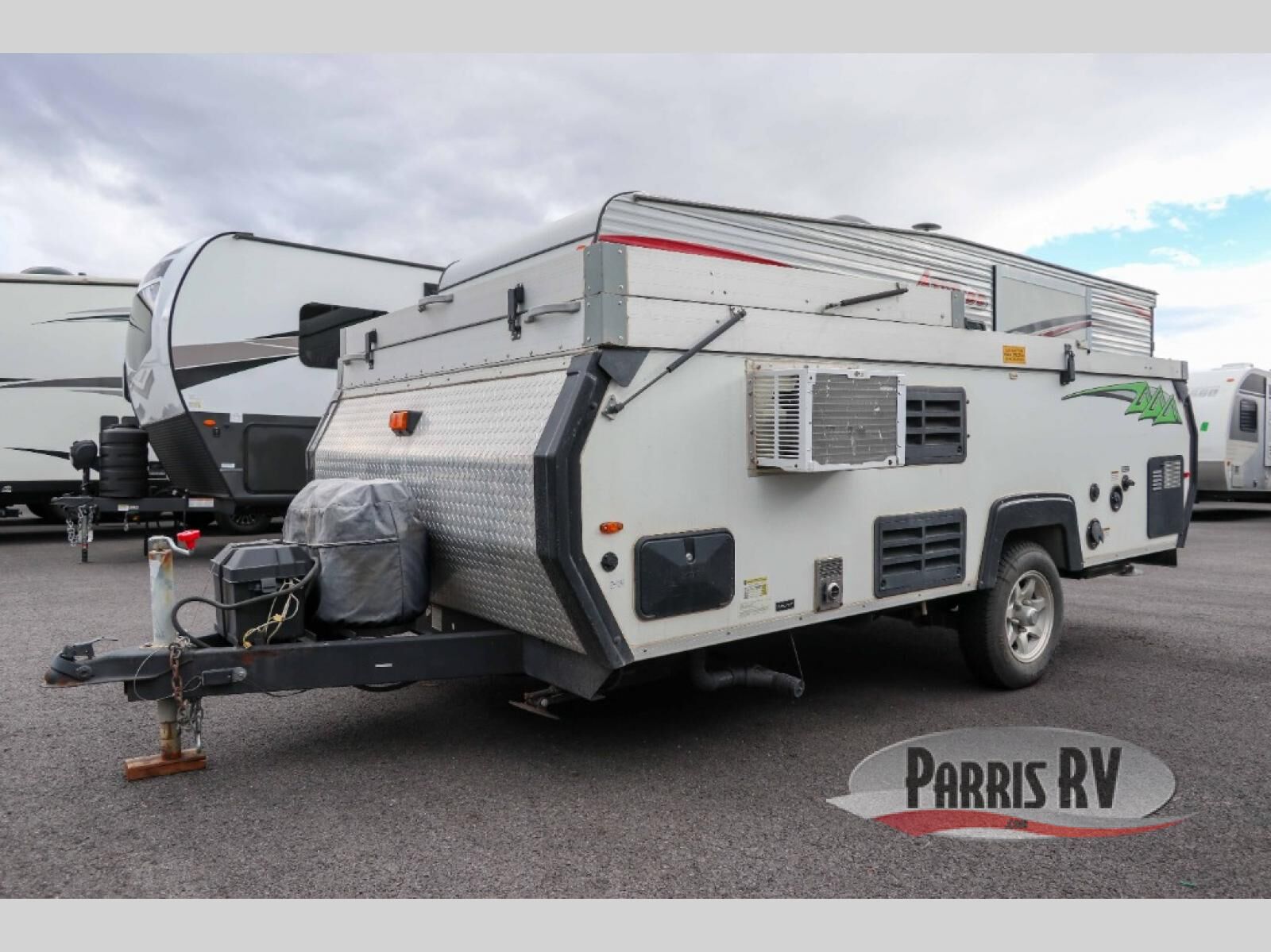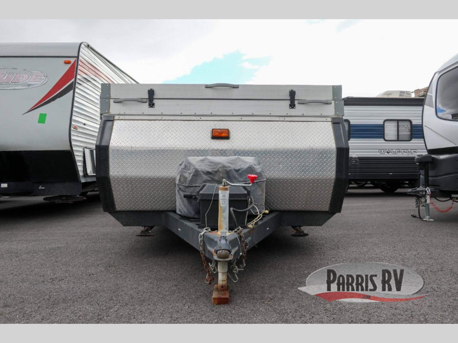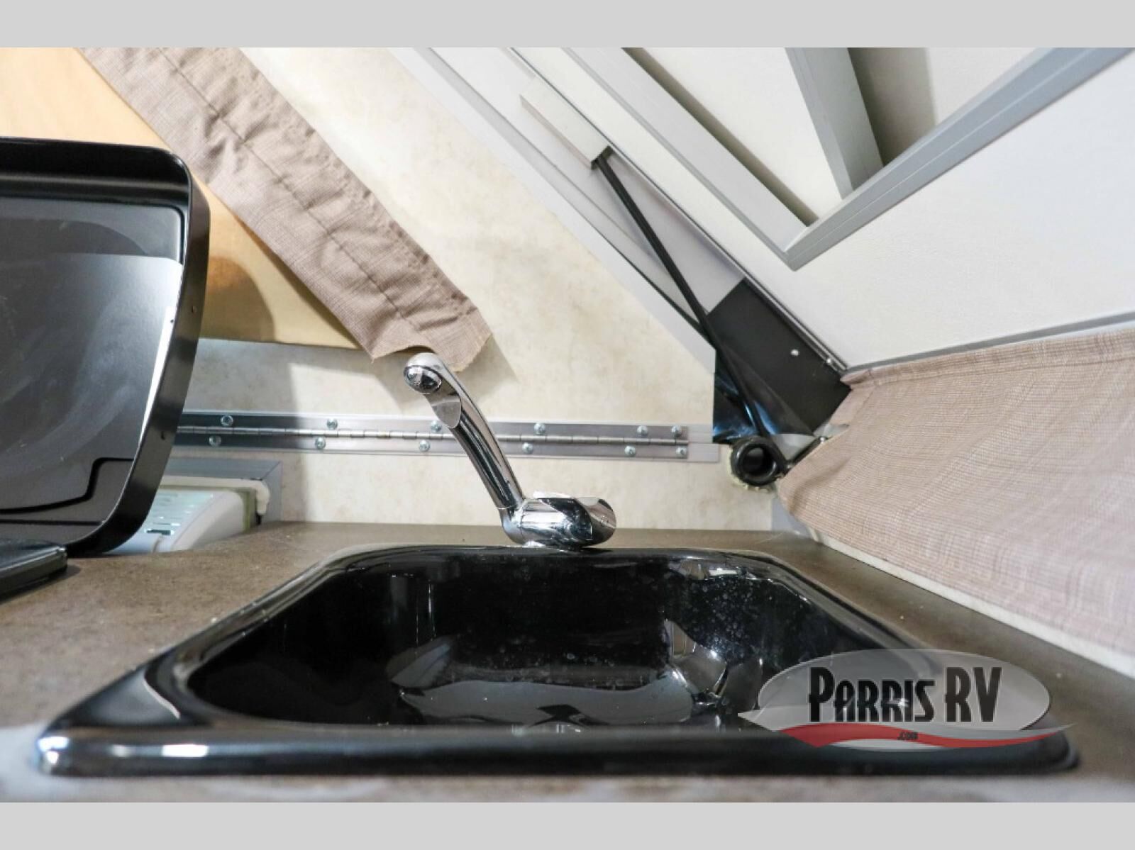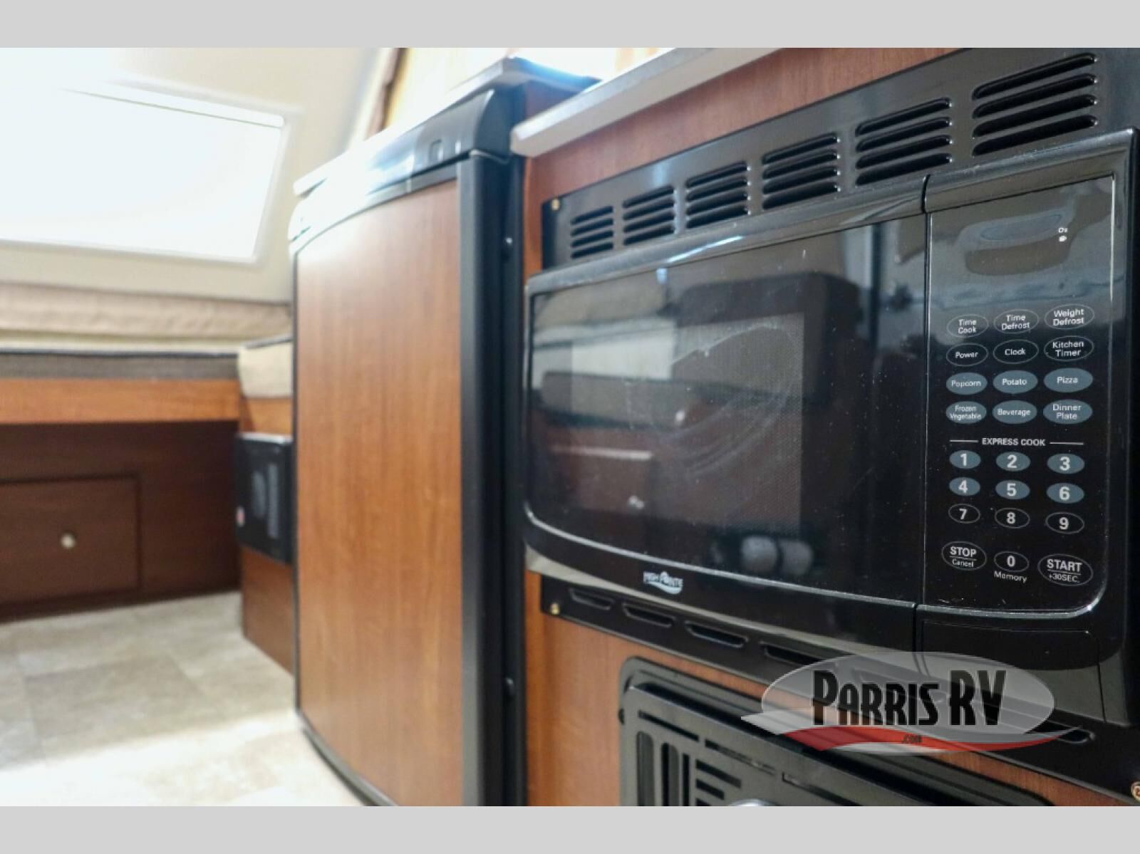 Along the road side of the pop-up there is a galley sink, two burner range where you can easily fix quick meals for your family, and a refrigerator under the counter. Enjoy your meal around the dinette, and at night you can get a good nights sleep on the 56" x 76" conversion bed, and more!