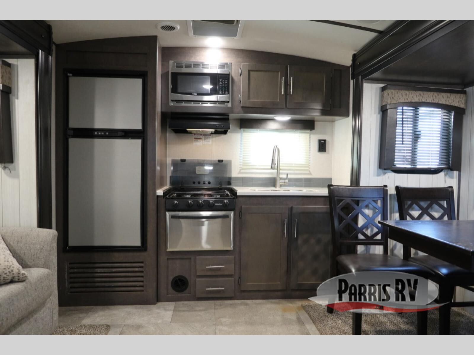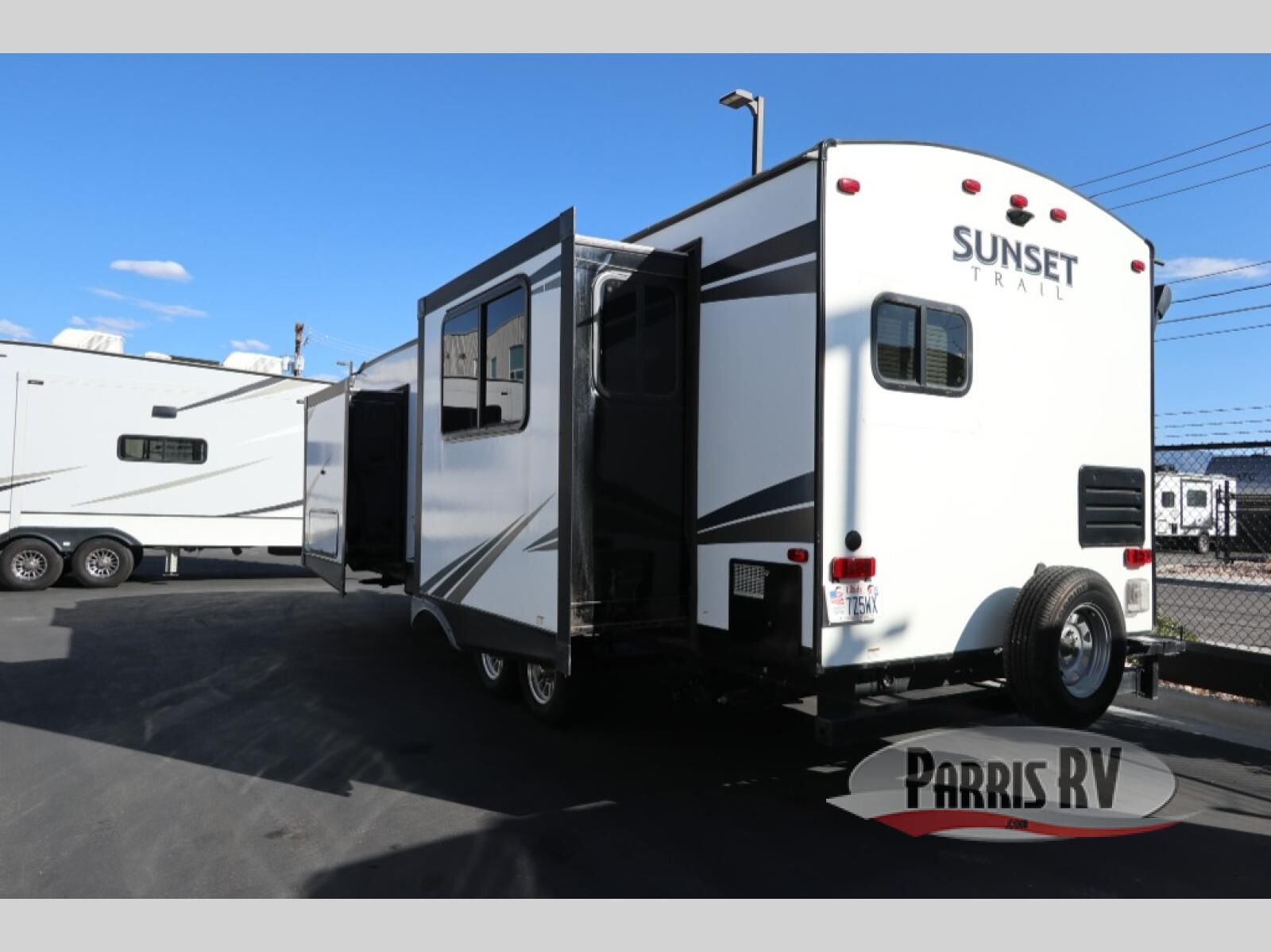 If you find yourself wishing you had an all-inclusive trailer to use on your outdoor adventures, then you need to check out this Sunset Trail Super Lite travel trailer. With its private master suite that houses a queen-size bed and private bathroom entrance, this trailer exudes luxury. The three slides that have been included in this unit add extra space for everyday living, and the 34" radius shower that has a skylight above creates a spacious and bright feeling as you get ready each morning.