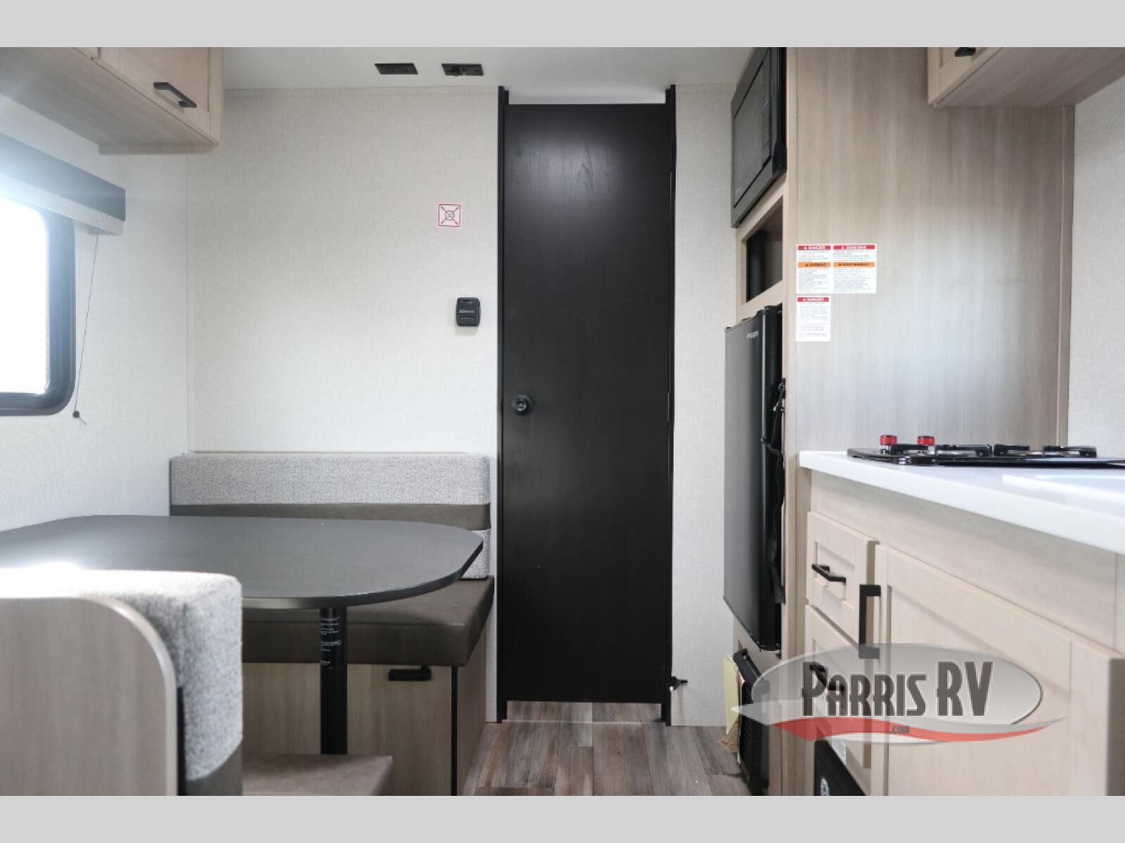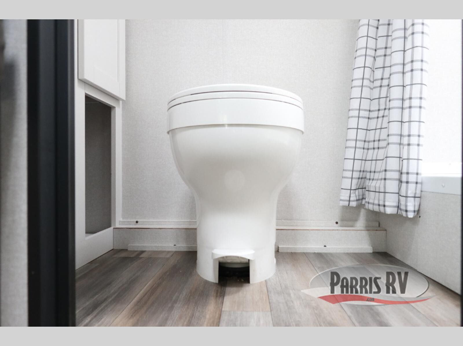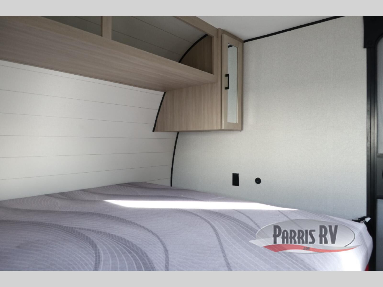 This travel trailer is just what the doctor ordered! Once you've loaded up the exterior storage, you can head out to the campground of your choice. The 10' power awning can be put out when you arrive, then you can relax in your camp chairs or head inside to make lunch on the two-burner cooktop. There is also a microwave oven for quick meals and a 12V refrigerator for food storage. A booth dinette provides a place to dine together, and you can convert it to sleeping space at night for one to two guests. You'll love the front queen bed that includes an overhead shelf and a wardrobe for your things, and this unit includes a full rear bath for added privacy. Here, you'll find a 24" x 32" shower, a toilet, and a linen closet plus shelves/storage for toiletries and towels!