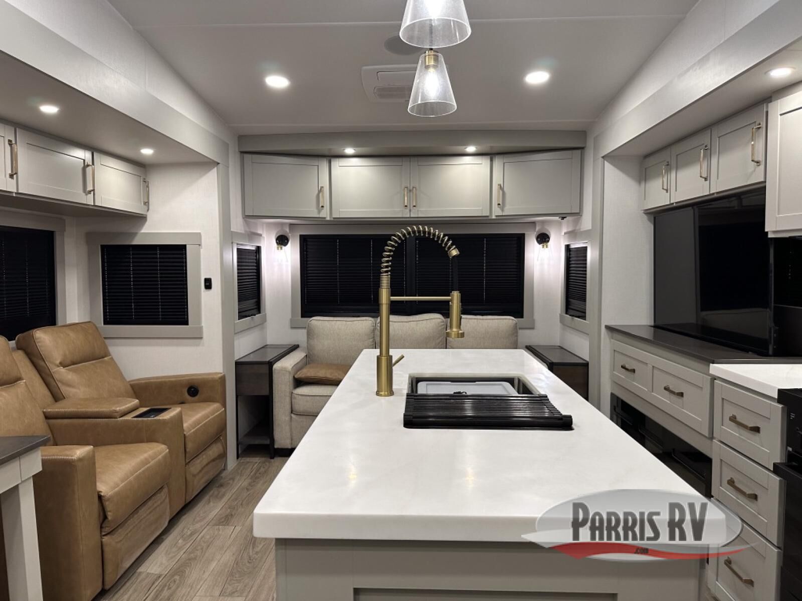 The Brinkley mid-profile Model Z fifth wheels bring you clean lines and an upscale look with plenty of style and exciting new features like the industry first brass plumbing connections. These units also feature an automotive grade front cap, plenty of exterior storage, dual exterior hot and cold showers, and wide stance leveling jacks for easy set up. Residential frameless windows provide a clean look and beautiful views, and ample electrical outlets and 6 USB/USB-C outlets allow all of your electronics and appliances to easily be used and charged.