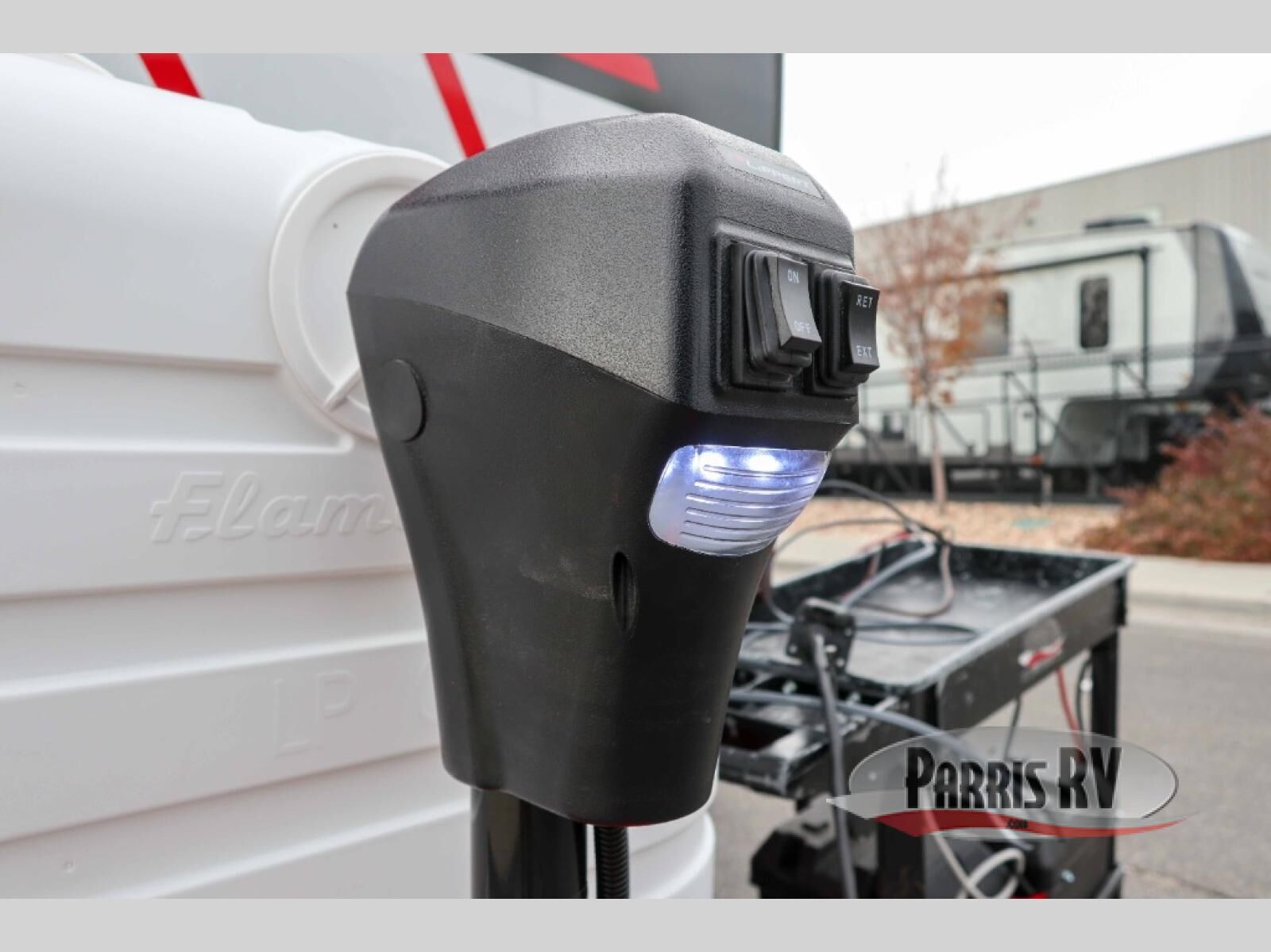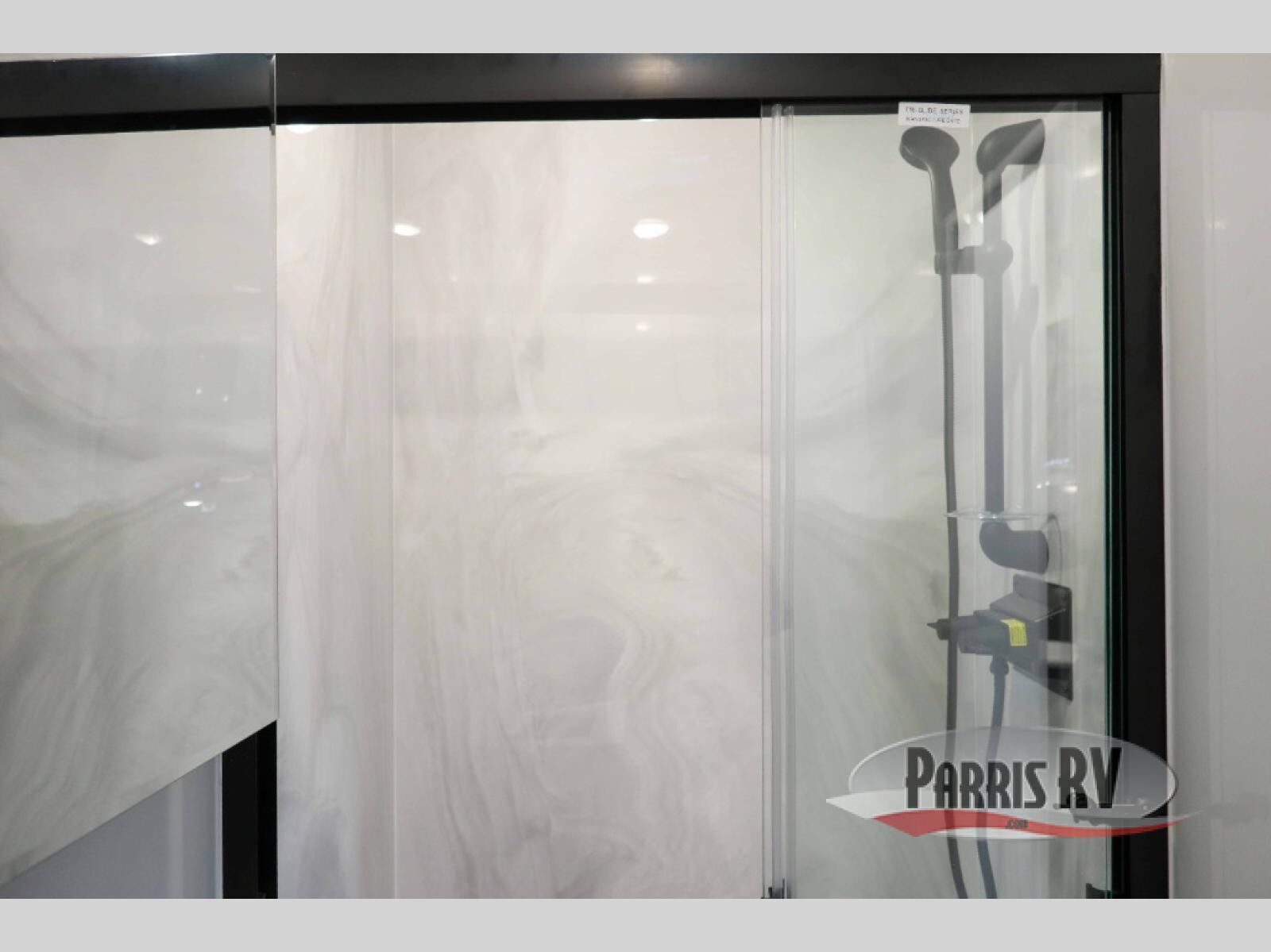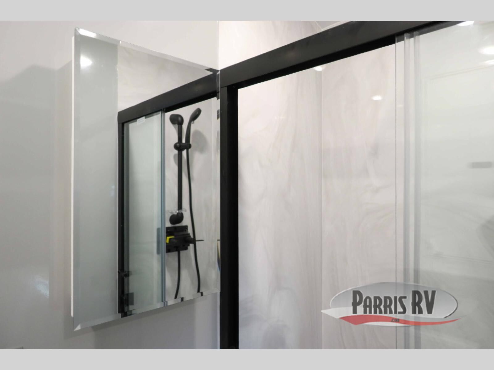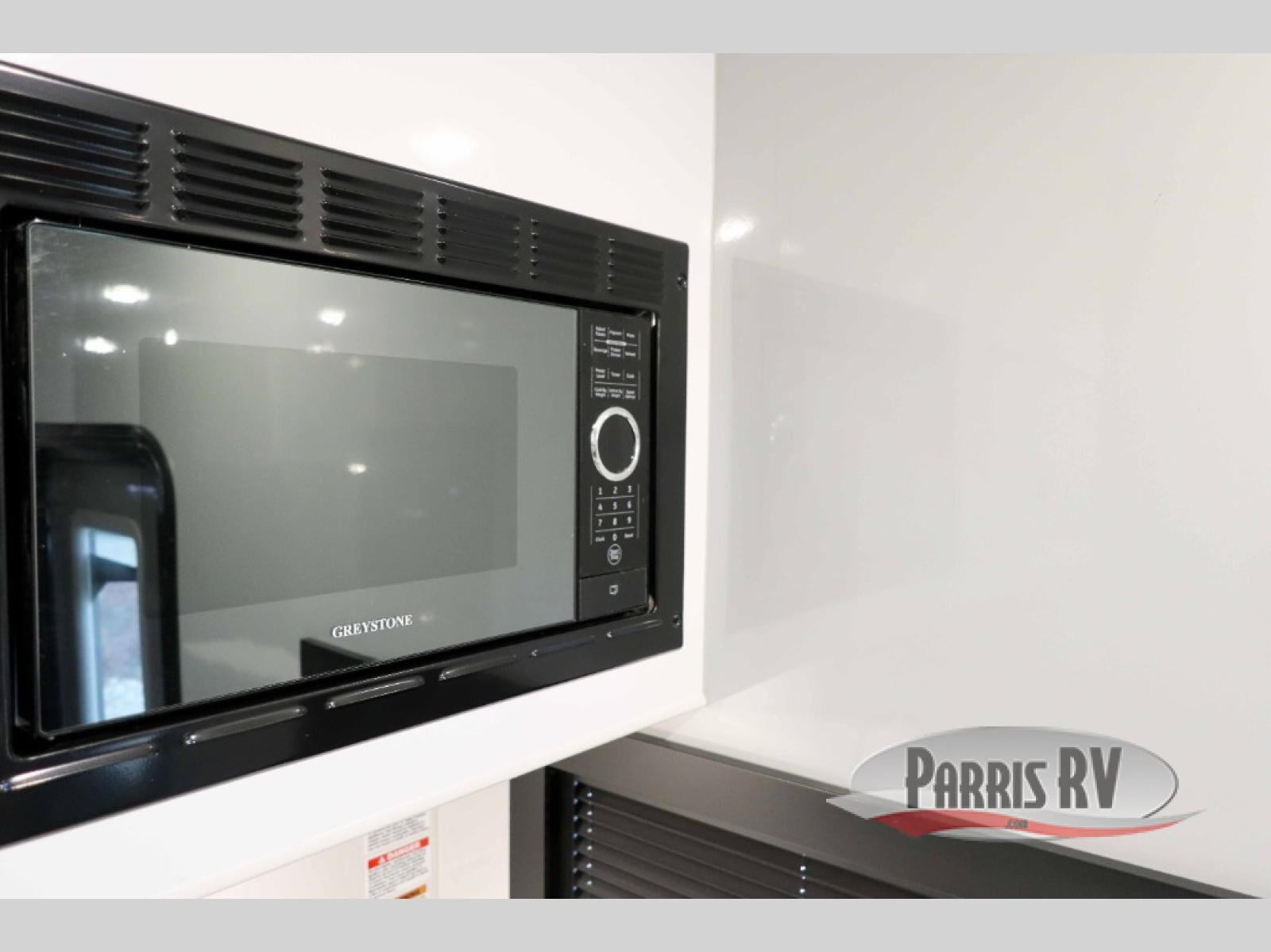 This 30' 2" toy hauler is ready for adventure when you are! The front of the unit is shared with the full bath that includes a shower/tub, toilet and sink, plus the kitchen with a three-burner gas cooktop, a sink, and overhead storage! A 12V refrigerator, pantry, and closet provide even more storage space for food, riding gear and more. There are two lounge chairs with a table in between where you can enjoy your coffee at each morning, and a drop-down queen bed in the garage provides a cozy place to sleep each night!
