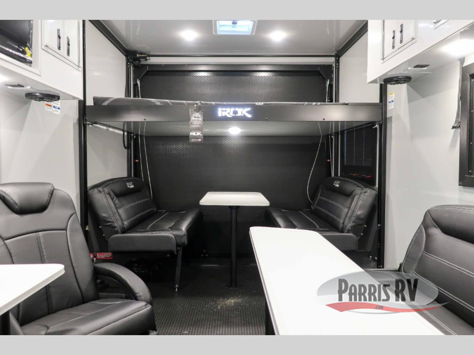 The iROK Trailers FBK RACE toy haulers are setting the standard for unmatched durability, maximum cargo capacity, and lightweight towing! These toy haulers are built with high-grade materials and innovative construction techniques to bring you a trailer that will last a lifetime. The front of each unit is shared with the kitchen and bathroom, giving you more space in the cargo area to relax and store your toys and gear. You will also find comfortable seating and sleeping spaces and plenty of storage for your belongings!