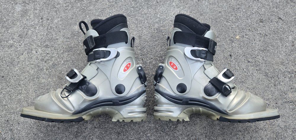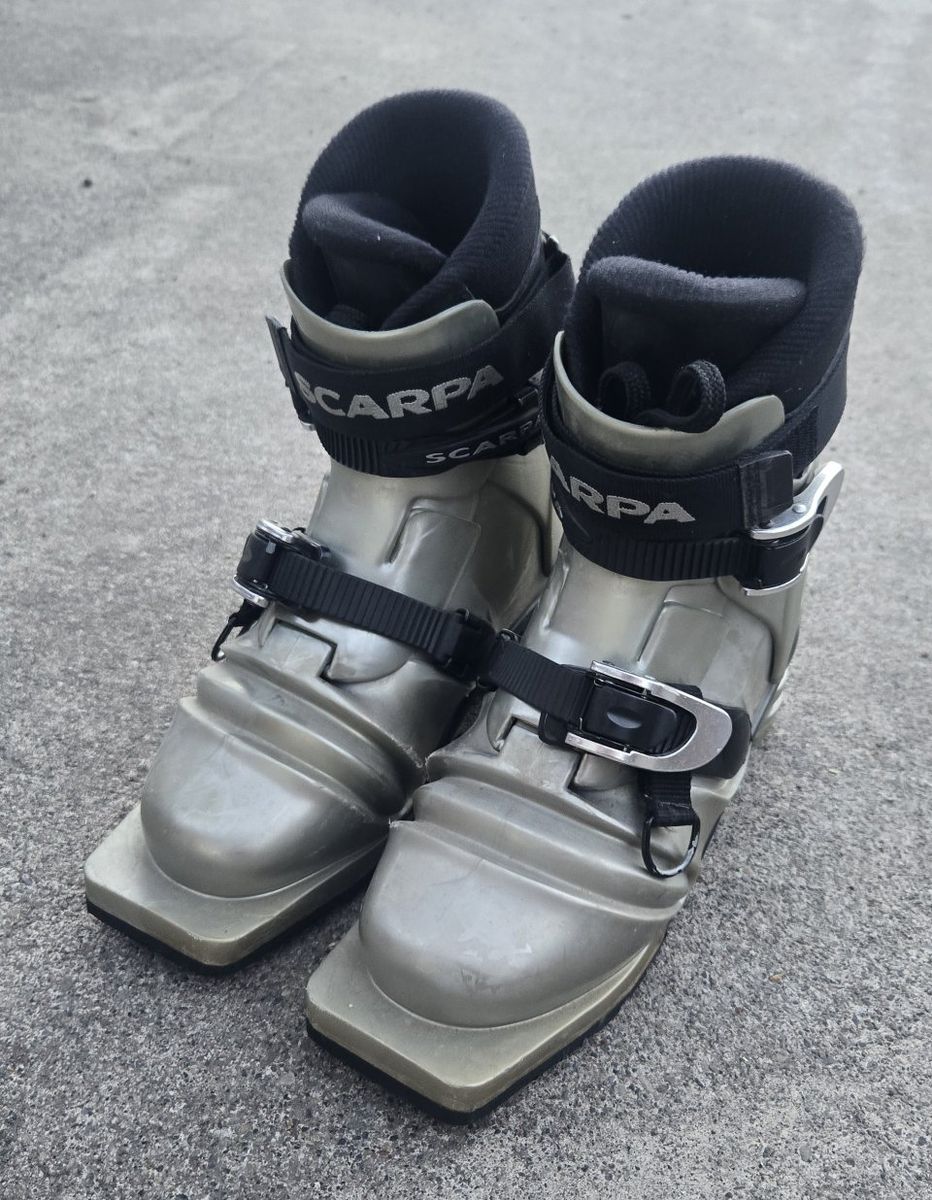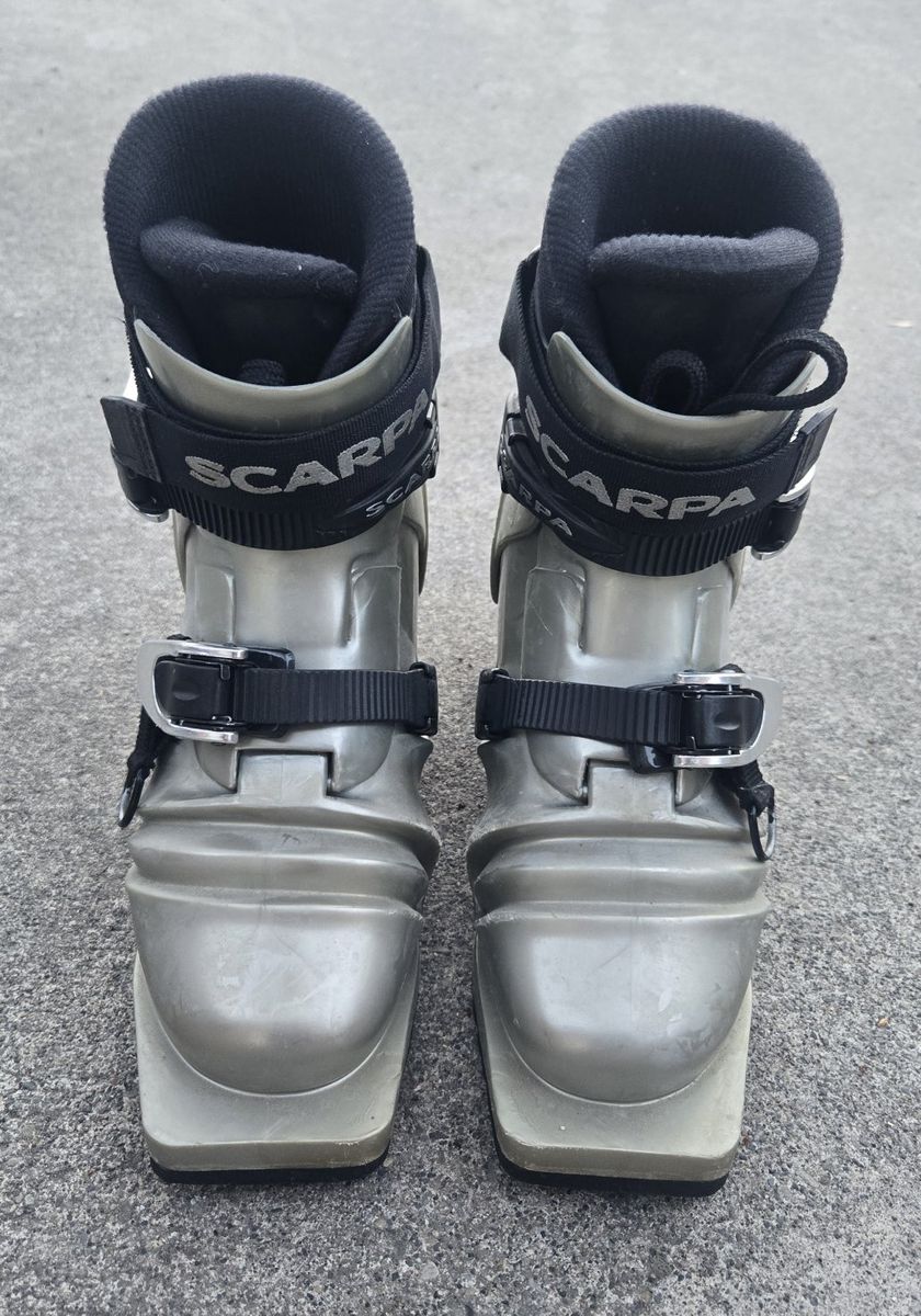 VenmoScarpa T3 Telemark Backcountry Ski Boots that will fit Telemark bindings only. 3 pin. 75mm. Women's/Girls Size Size 6-6.5 shoe size or Mondo 24. Great boots to have fun on the slopes. Text please!