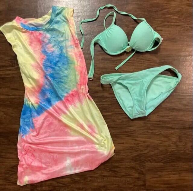 $5 each all 6 for $25 Purple with gold accents XS Victoria Secret ruffle bottom XS Mint Bikini small Tye dye cover small Polka Dot Bikini small Striped halter small
