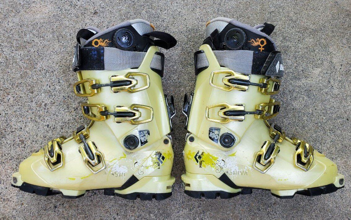 VenmoWomen's Black Diamond Shiva Alpine Touring Ski Boots. Sole length 277mm Mondo 23.5. Women's/Girls shoe size 6-6.5. Has inside Boa lace tightener to get the perfect fit. Great Backcountry boots that will fit a variety of alpine touring backcountry bindings. Text is best.