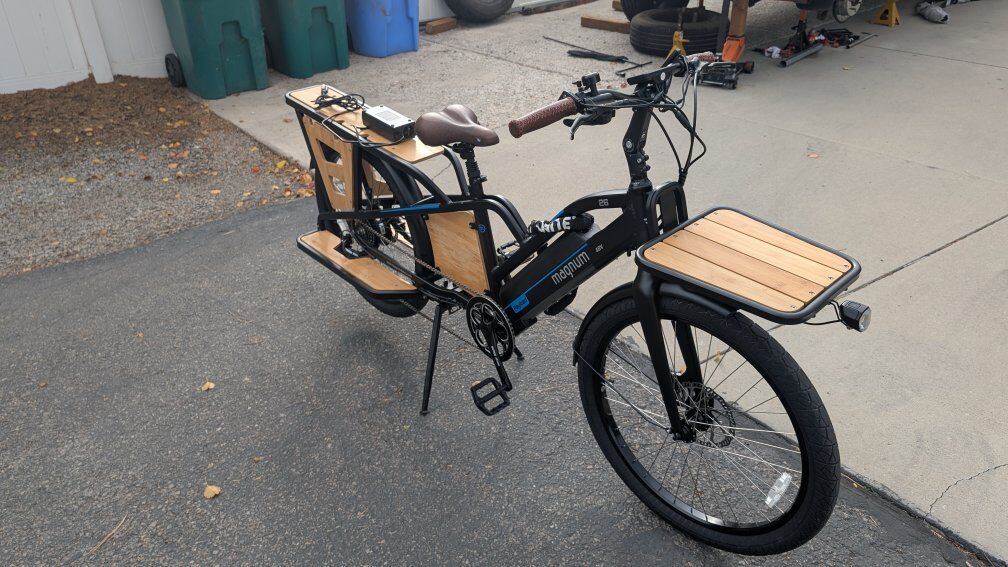 VenmoMagnum Payload e-bike. This is a large cargo E-bike. I purchased it with thoughts of using it to get to work. That never happened so it only has 6 miles on it. I also have a second seat which is wider than the one it came with. Asking $1900.