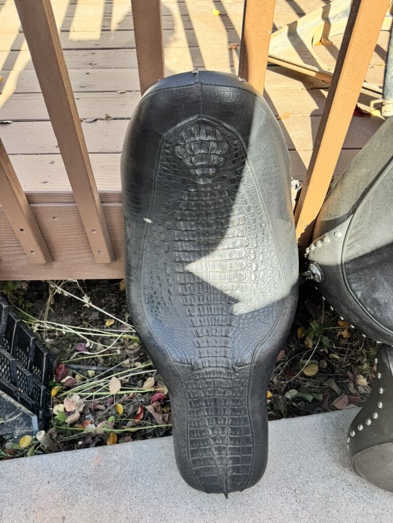 Great condition, alligator skin is for a Road King, one is Heritage softail stock, other is a 90s touring. Pickup in Springville Gator $250 Heritage $150 Touring $75