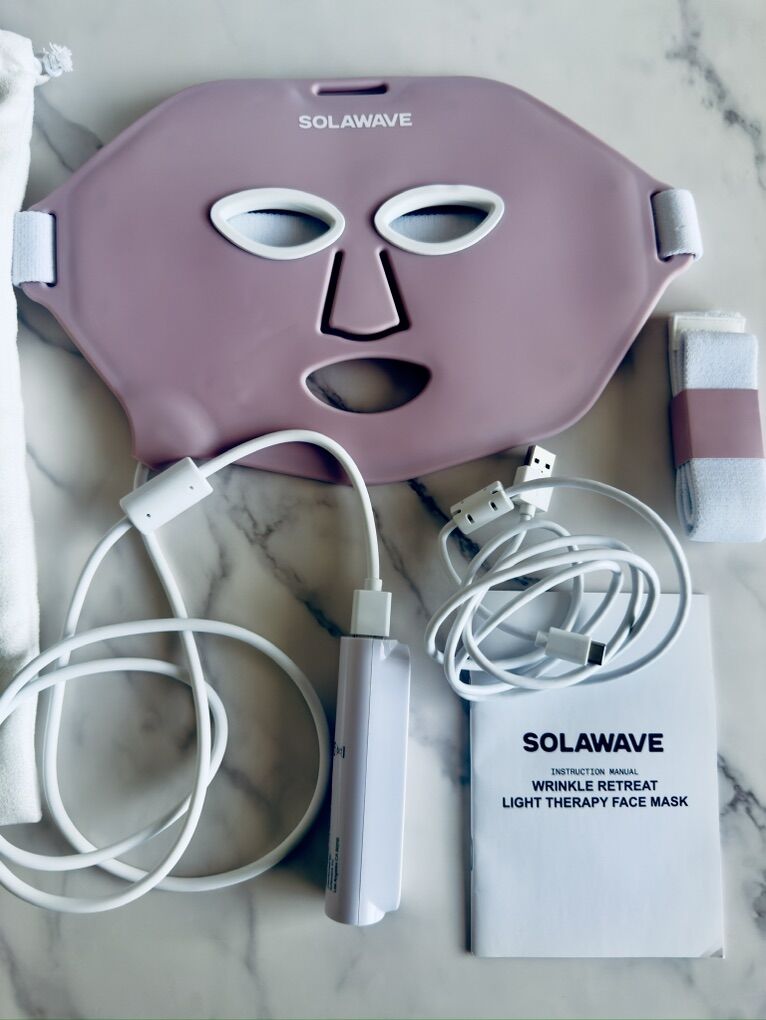 Description: Solawave Wrinkle Retreat Light Therapy Face Mask uses Red and Near-Infrared Light to reduce fine lines, wrinkles, and discoloration. Flexible, medical-grade silicone hugs the face, making our patented, hands-free design comfortable for all. Portable and rechargeable. FDA cleared.