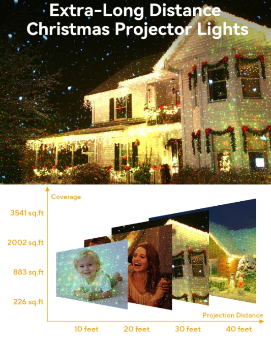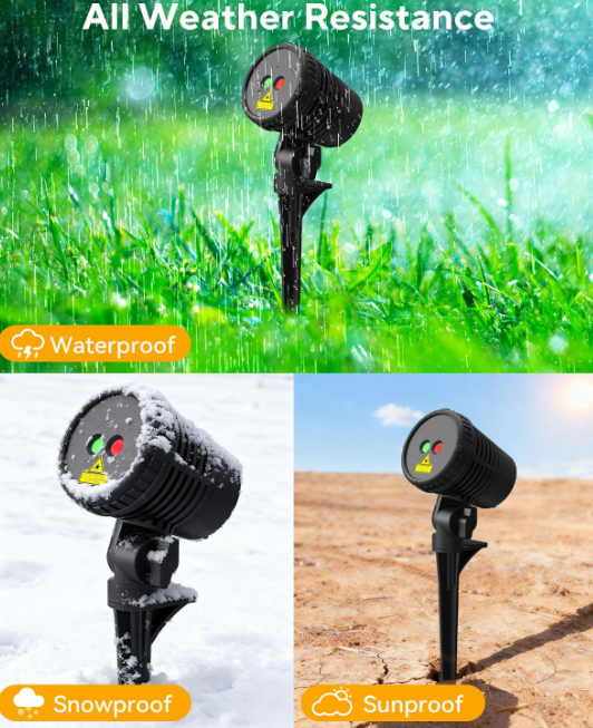 Waterproof & Weather-Resistant: Designed for year-round use, this outdoor Christmas projector light is made with durable materials that withstand rain, snow, dust, and sunlight. It’s a reliable choice for holiday decorations, ensuring bright and colorful lighting effects in any weather.