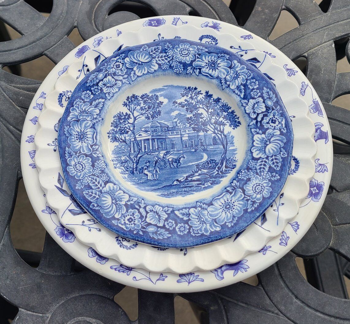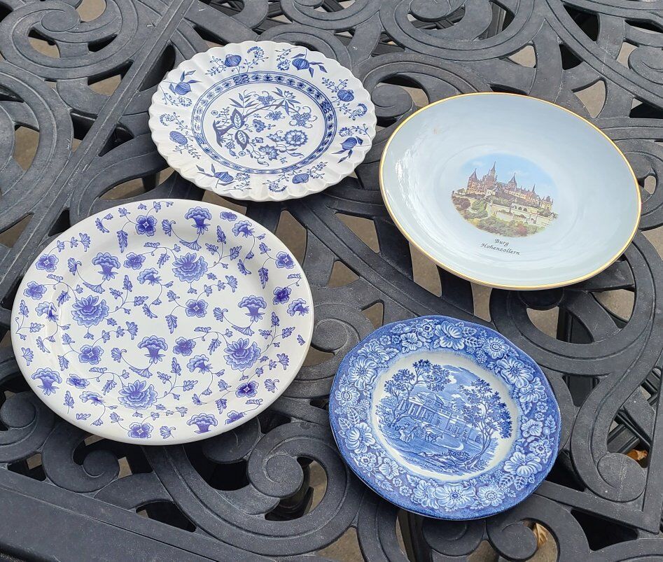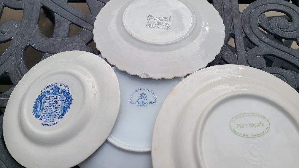 4 plates pictured are included in the price. Antique Different manufacturer markings on the back. 1 has a chip on the back.
