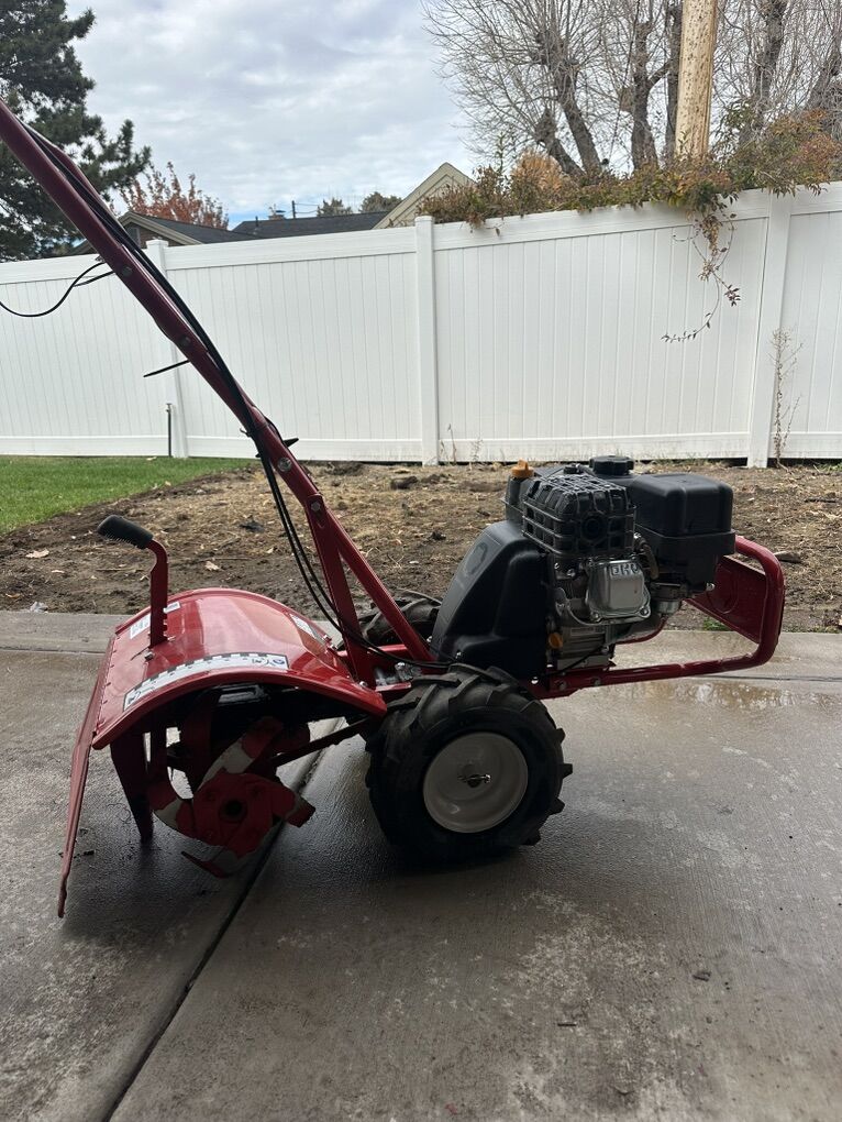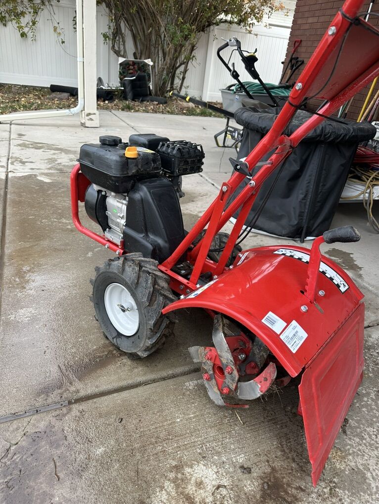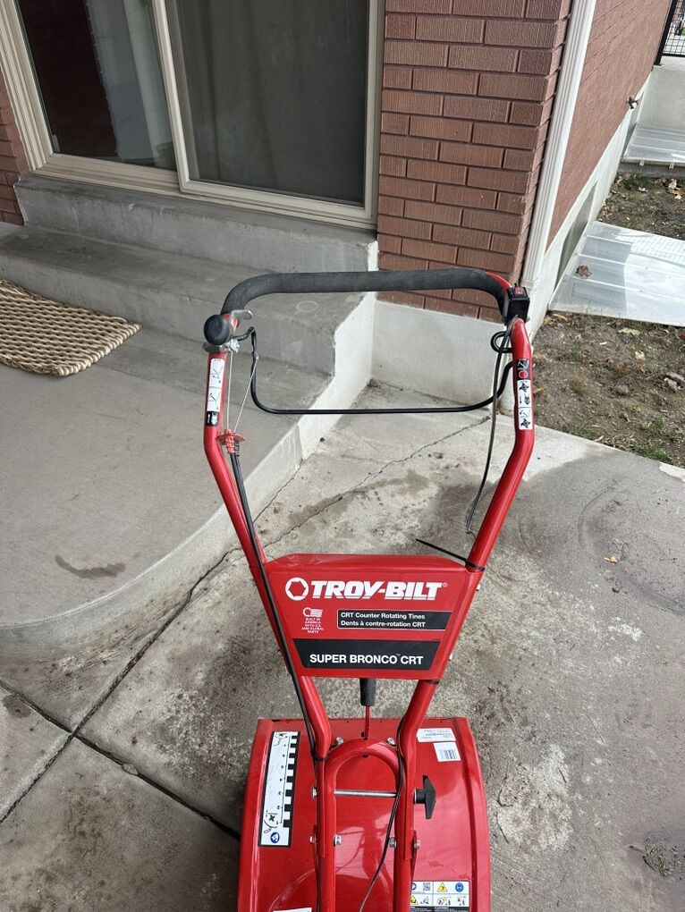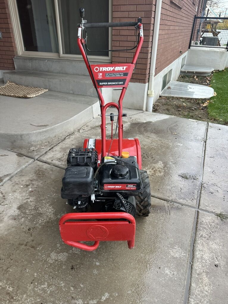 VenmoTroy-Bilt tiller in great condition bought in the spring of this year. Used a handful of times in a backyard project. There is a dent behind the right wheel (shown in a picture) but doesn’t affect the tiller in any way.