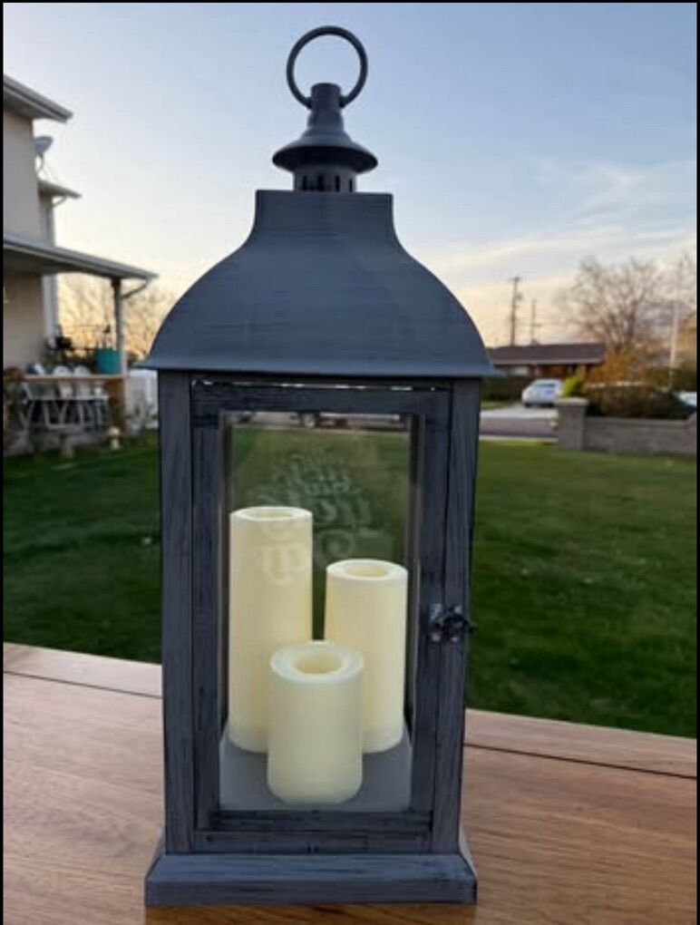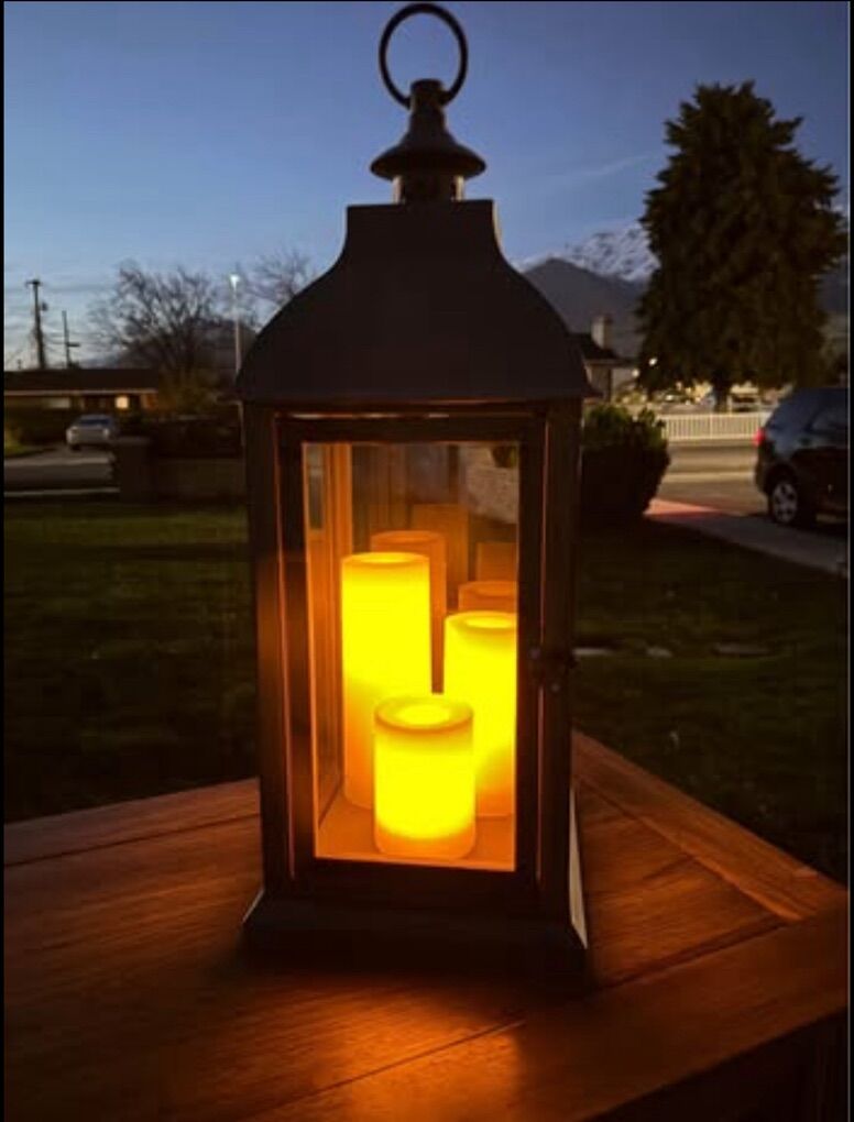 24” tall Battery Powered Integrated LED Outdoor Indoor Lantern, On & off switch is on the bottom! Battery's not included.