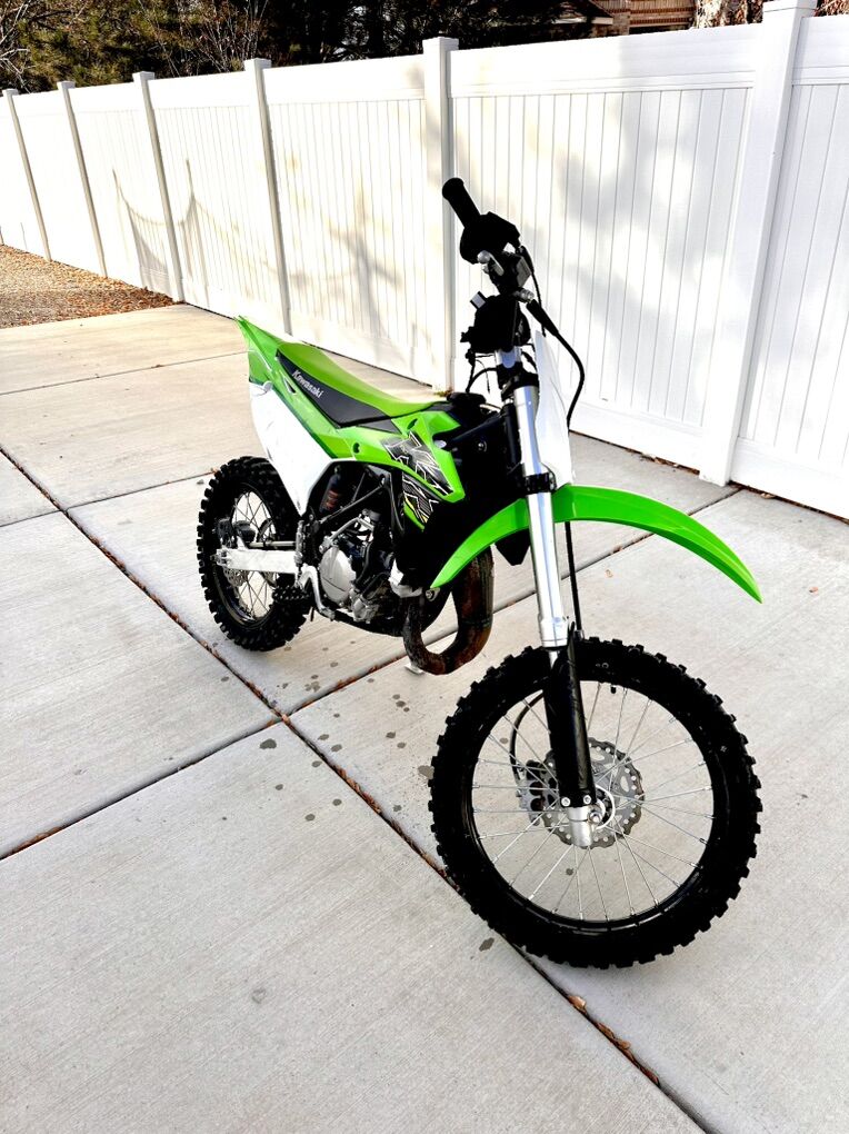 Selling my kx100 has lots of extra parts. It runs good and has no problems Full fmf exhaust Radiator temp cap Accessory handle bar bag 12 tooth front sprocket Large foot pegs Brand new plastics (extra set) Gas can