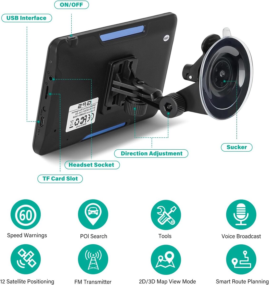 NEW IN BOX! GPS Navigator for Car Truck RV, 7 Inch Touch Screen GPS for Car with 2025 Maps Free Lifetime Updates, Voice Turn-by-Turn Guidance, Speed Limit & Red Light Camera Alerts, Custom Truck Routing (Blue)